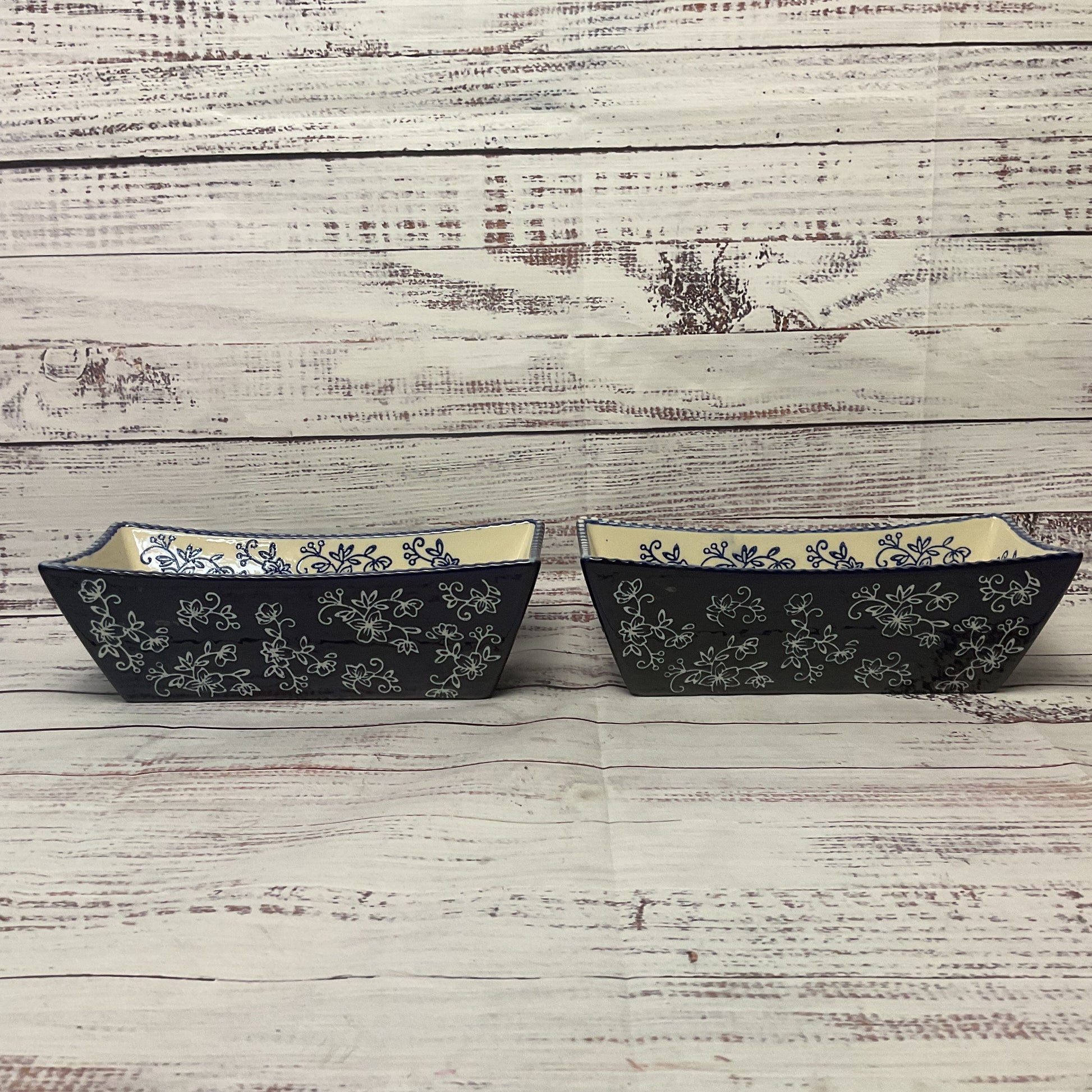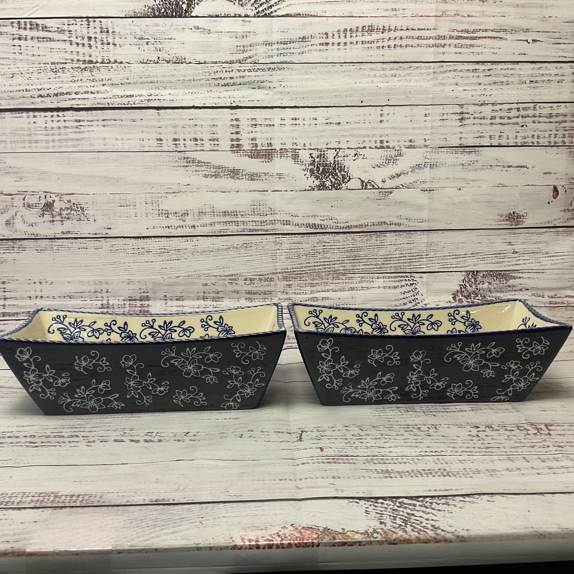 Type: Rectangular Bowl Blue Floral Lace Ceramic Pair Of 2