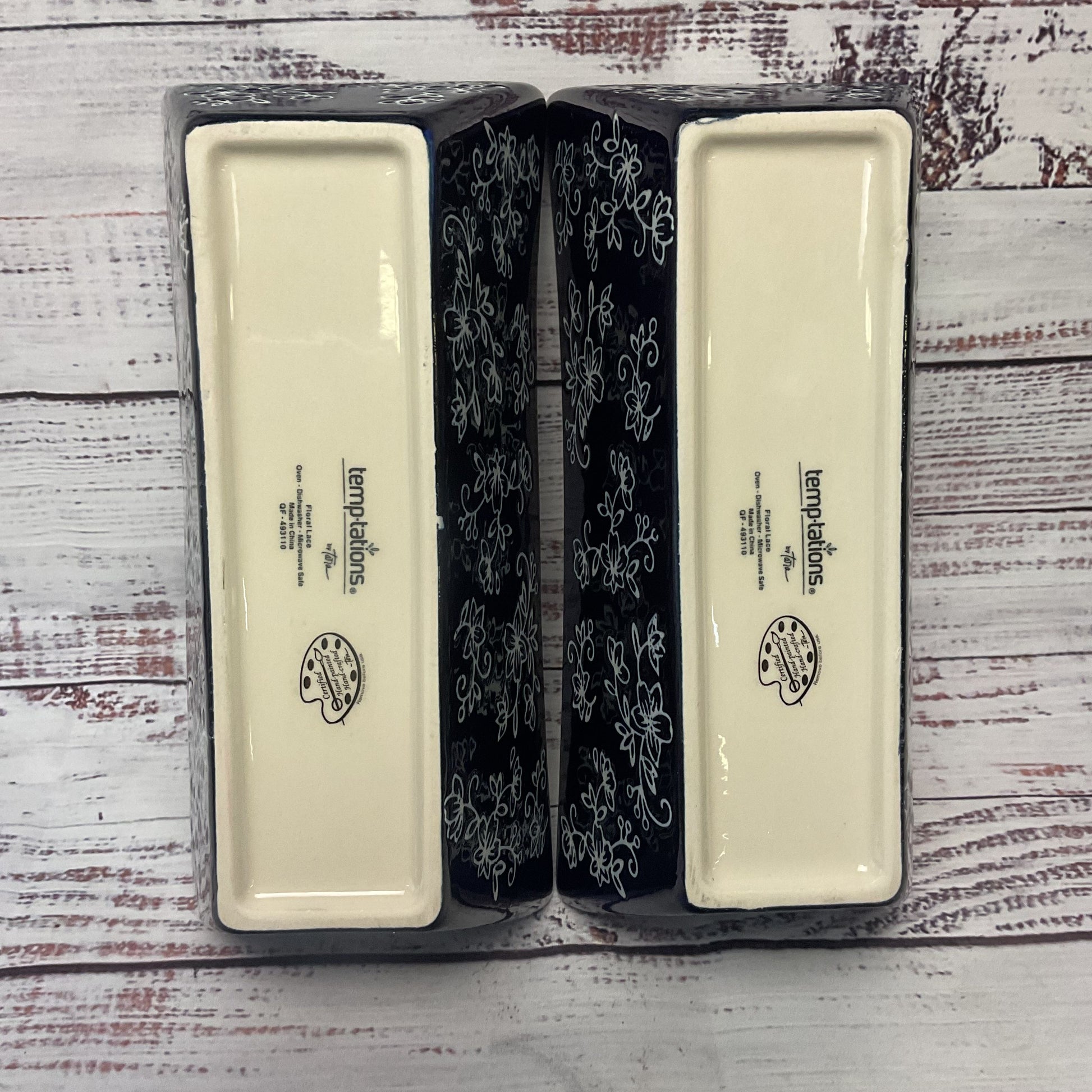 Temp Tations Rectangular Bowl Blue Floral Lace Ceramic Pair Of 2