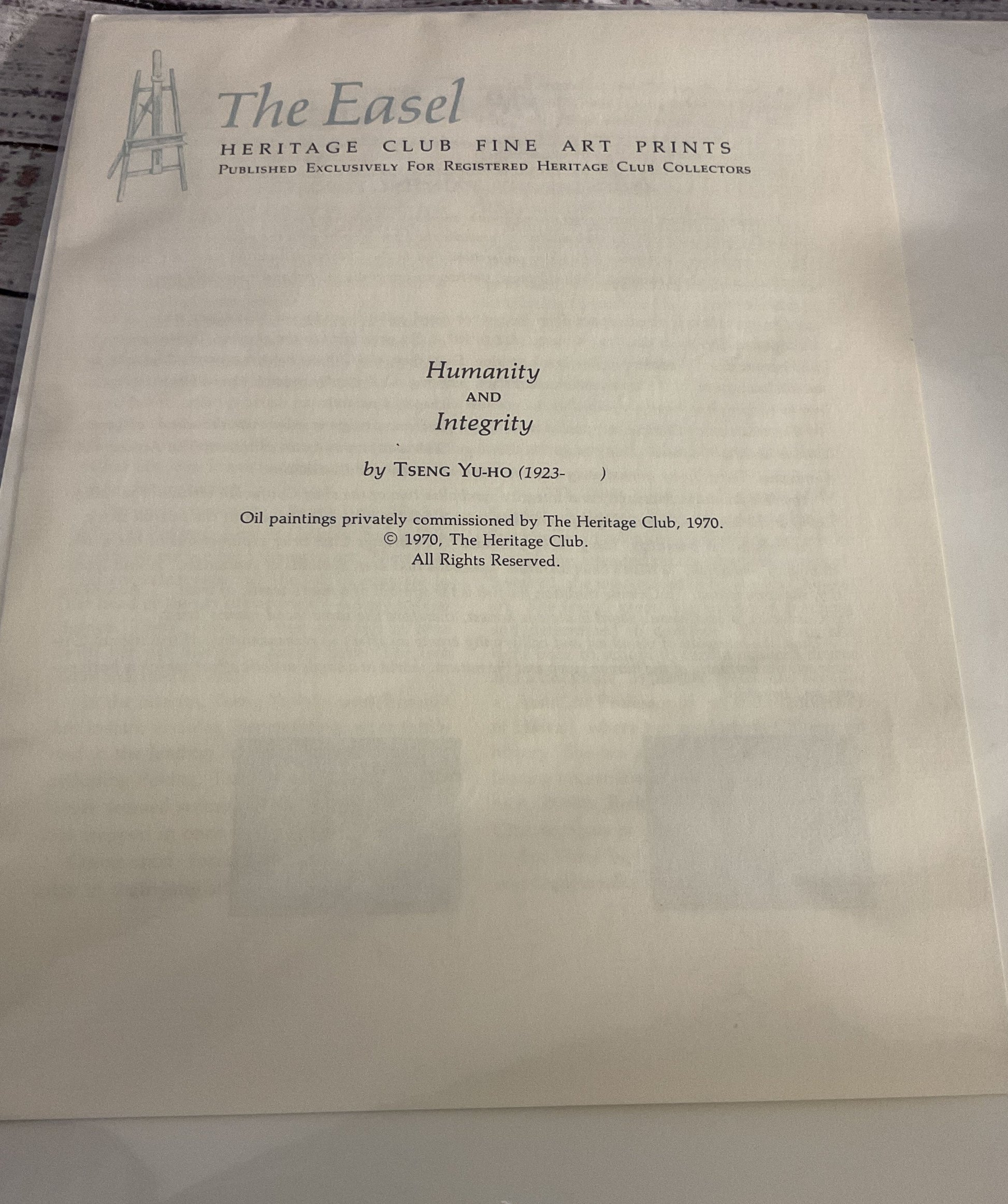 The Heritage Club Humanity & Integrity Print by Tseng Yu-Ho 1563/9500 Print