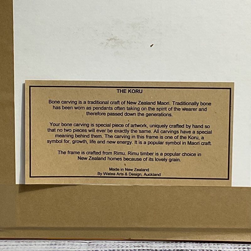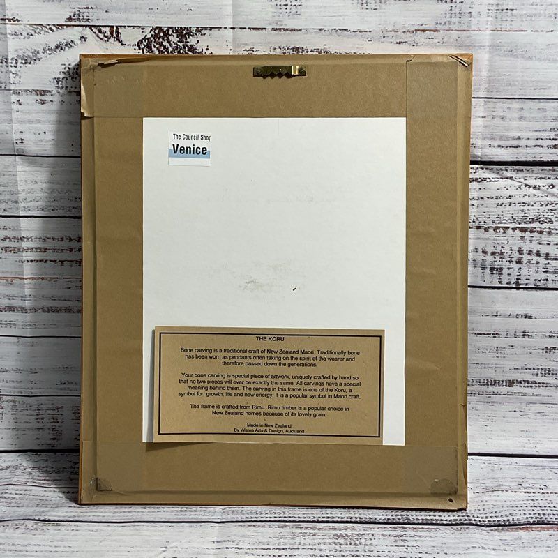 The Koru Bone Carving Sculpture by Watea Arts & Design, Framed