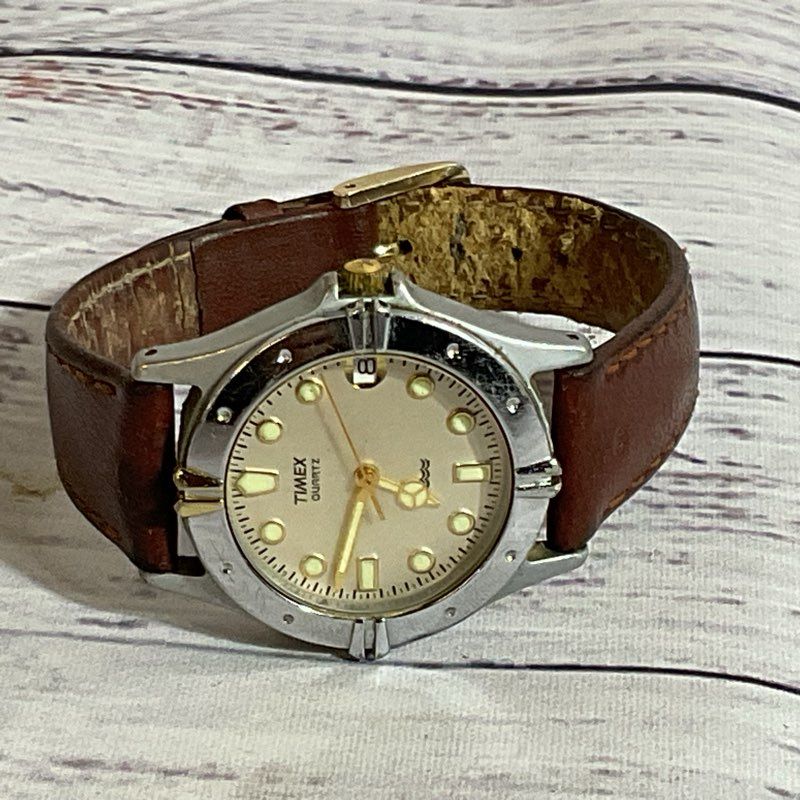 TIMEX Quartz Silver Tone with Brown Leather Band Ladies Watch