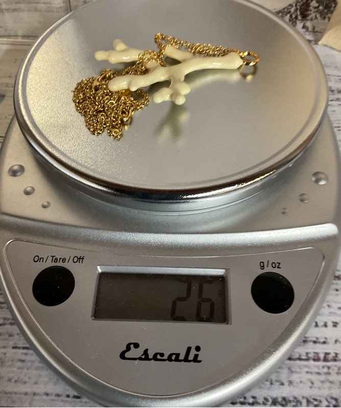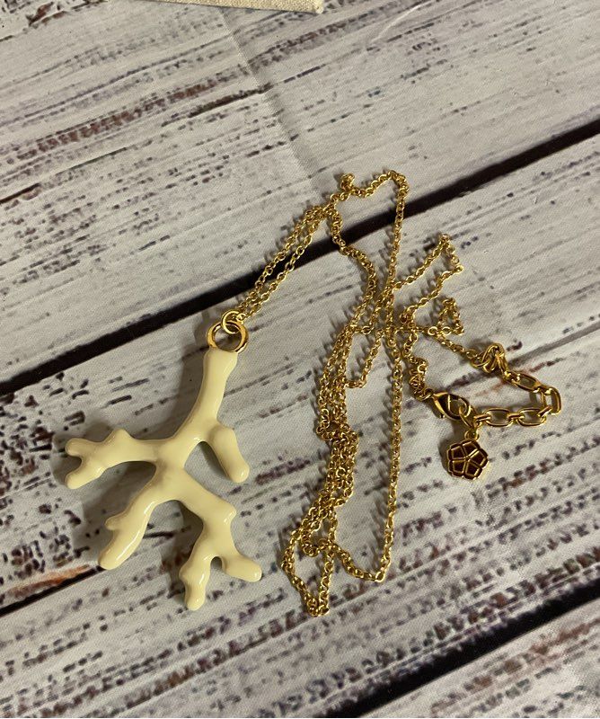Trina Turk Gold Tone Long Chain Necklace with White Coral Shape Pendant