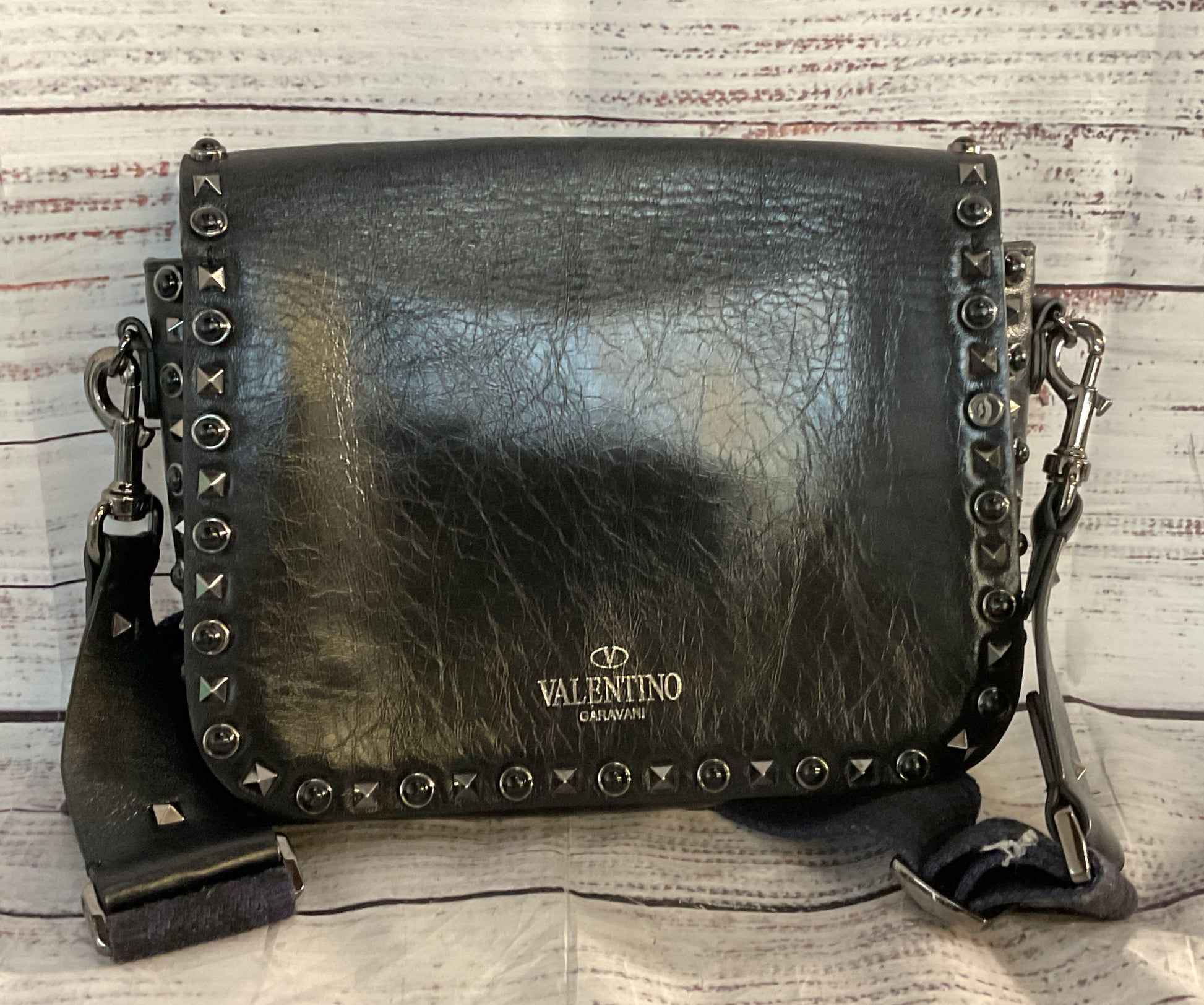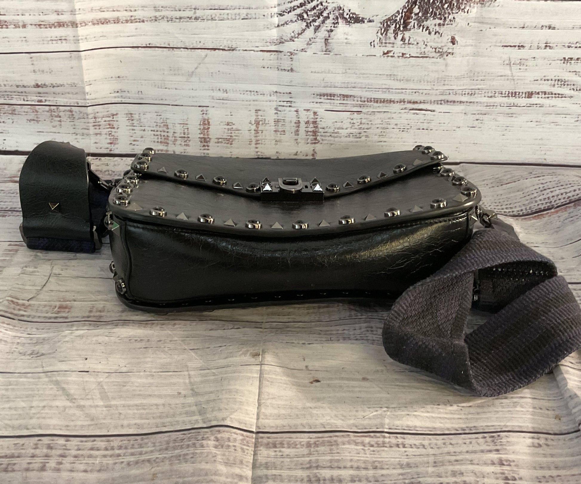 Valentino Leather Rolling Rockstud Guitar Strap Shoulder Crossbody Bag Black