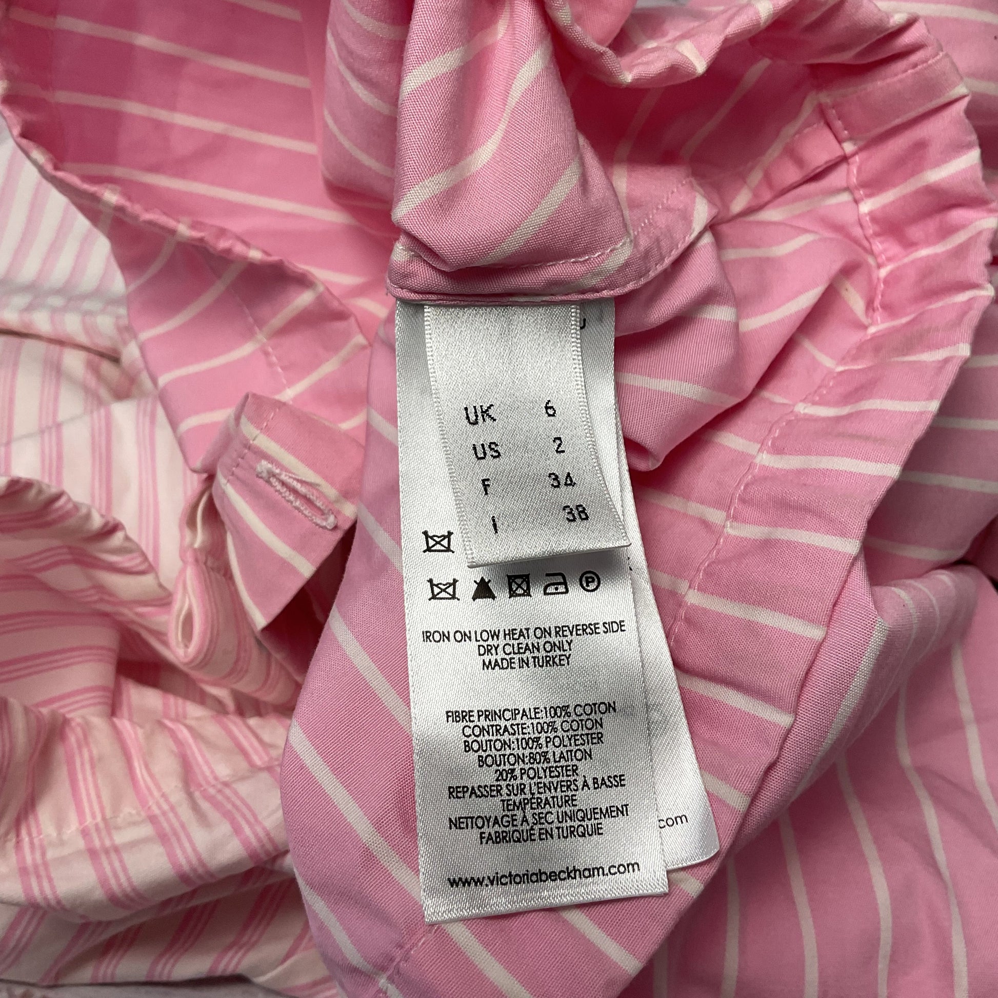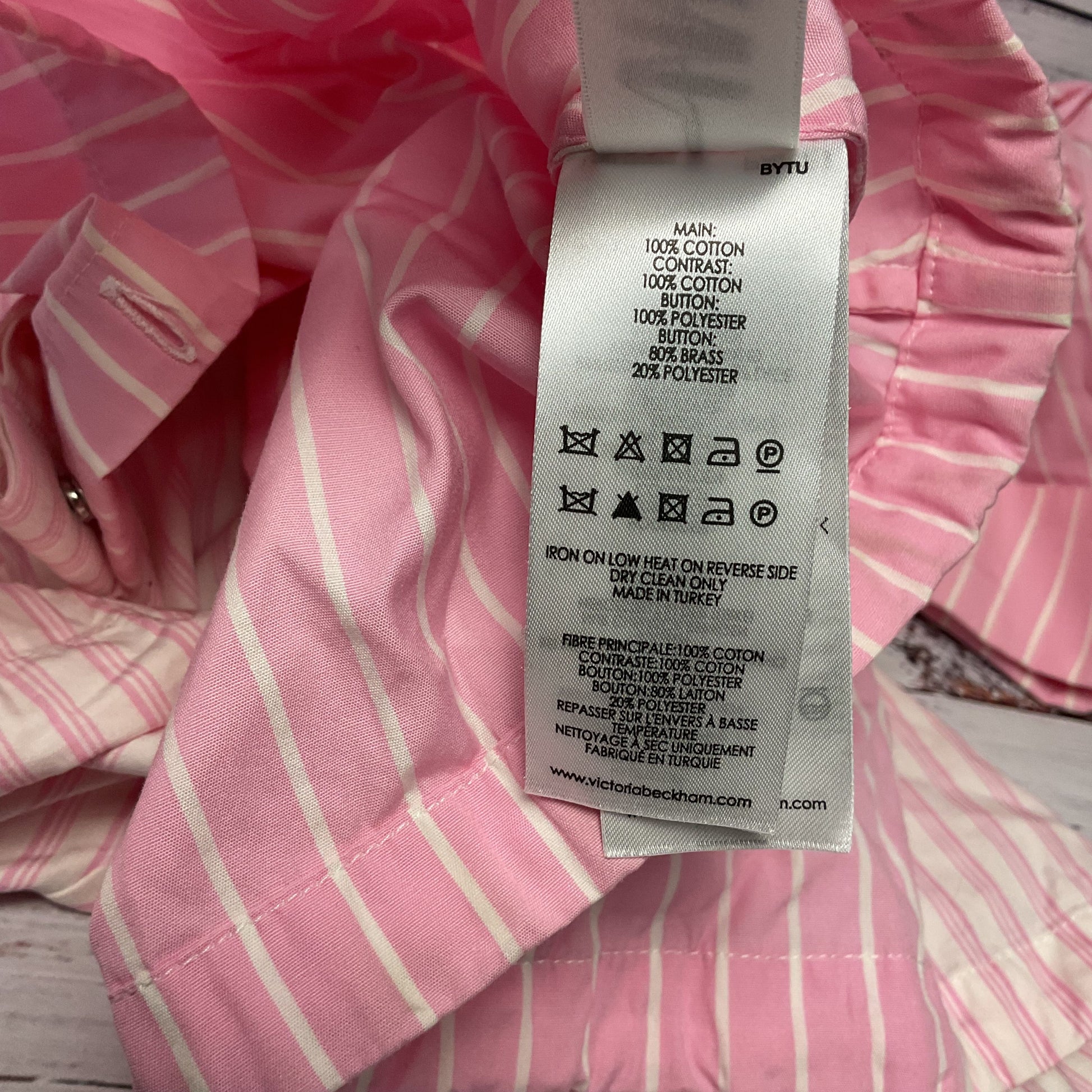 Victoria, Victoria Beckham Pink White Stripe Short Sleeve Button Up Shirt Size 2