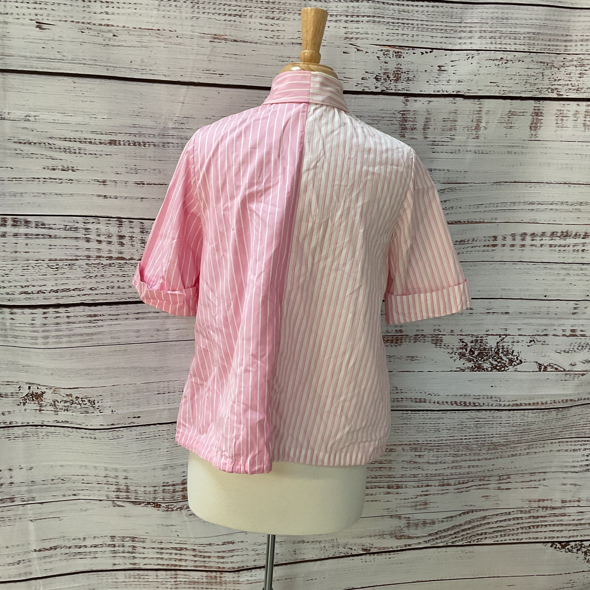 Color/Pattern: Pink White Stripe Short Sleeve Button Up