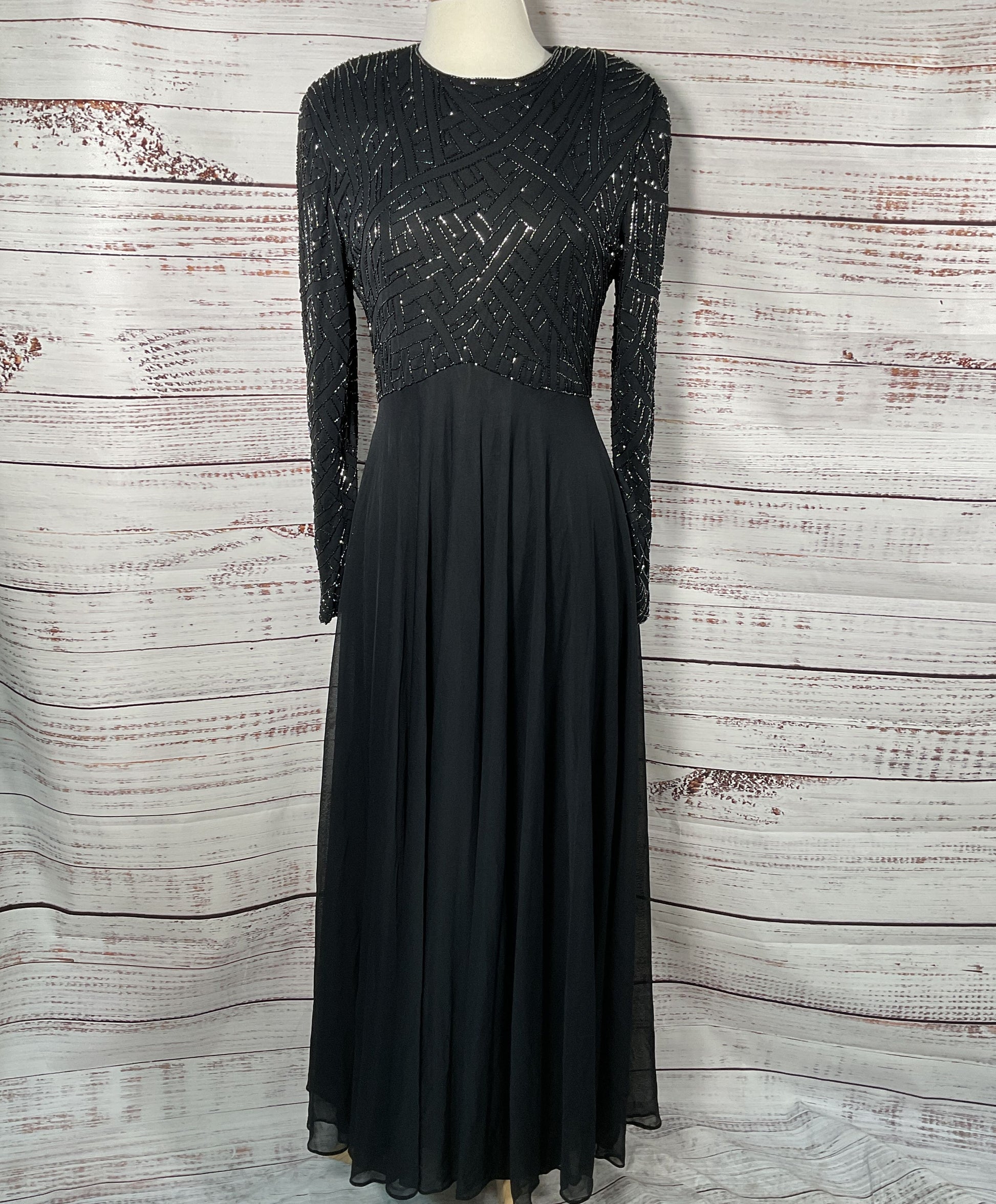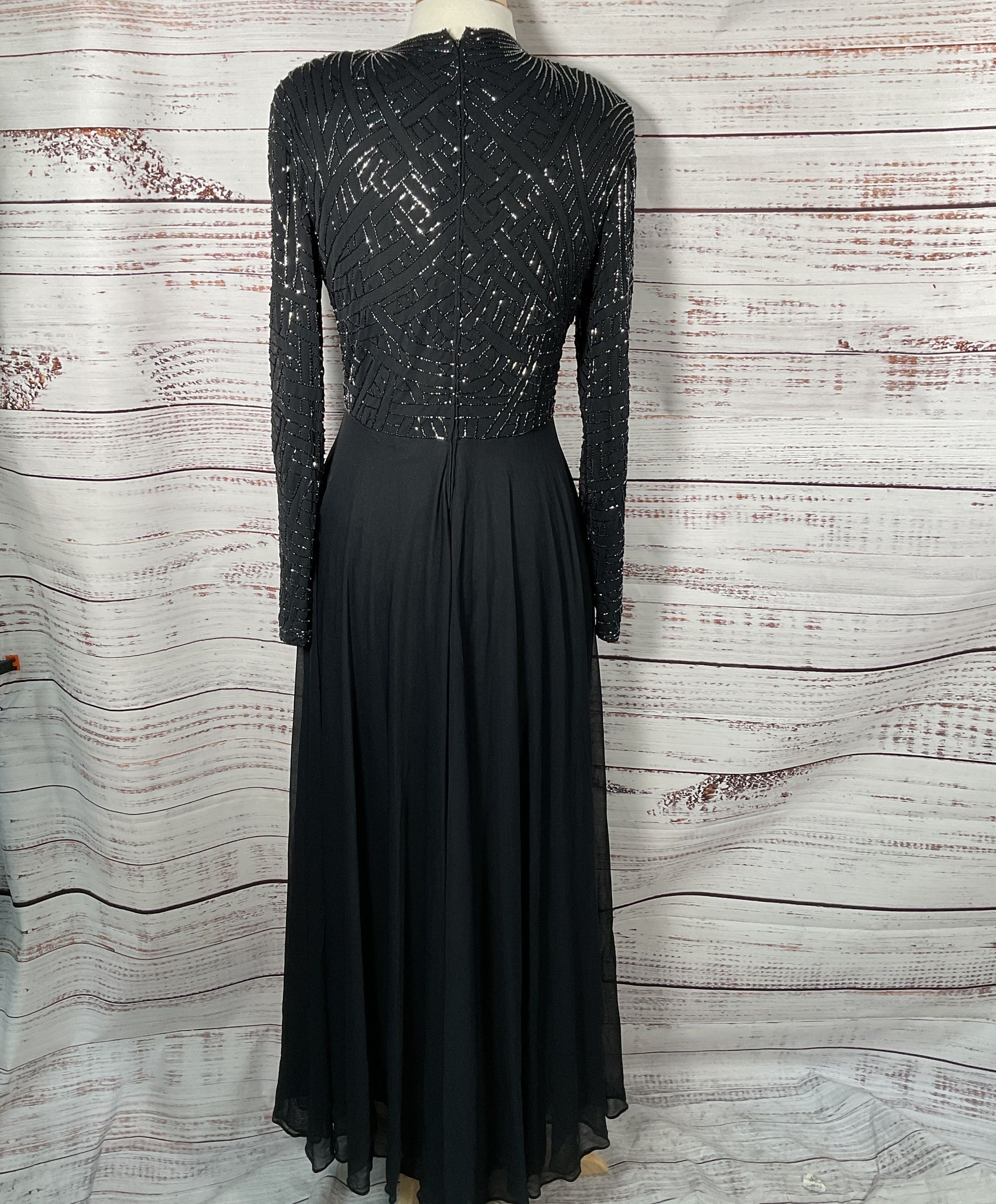 Victoria Vintage Beaded Long Sleeve Gown Black 14