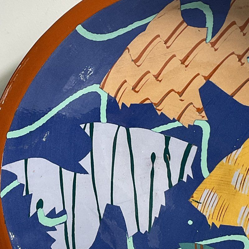 Vintage 1985 Hand Painted Abstract Fish Bowl Pottery Signed (Lisa C?) 1985