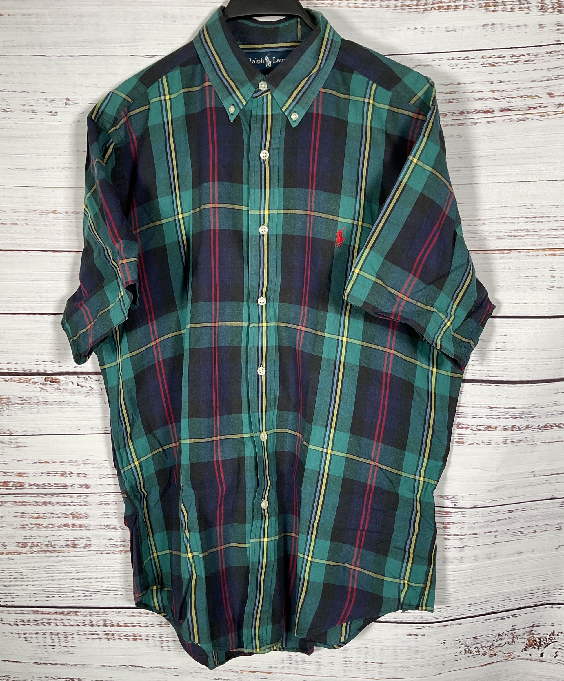Vintage 1990's Ralph Lauren Men's Green Plaid Cotton Button Down Shirt