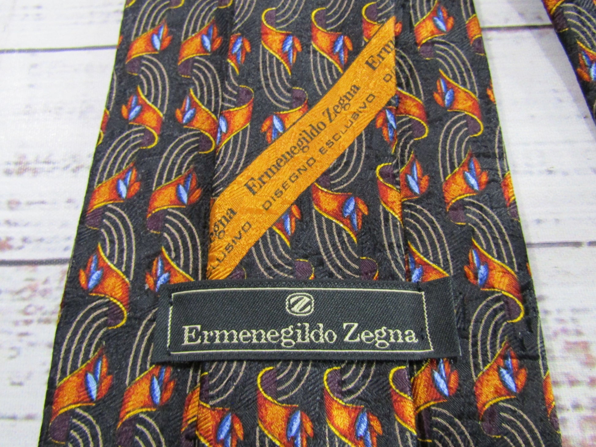 Vintage 90's Ermenegildo Zegna Men's Abstract Print Silk Tie Made in Italy