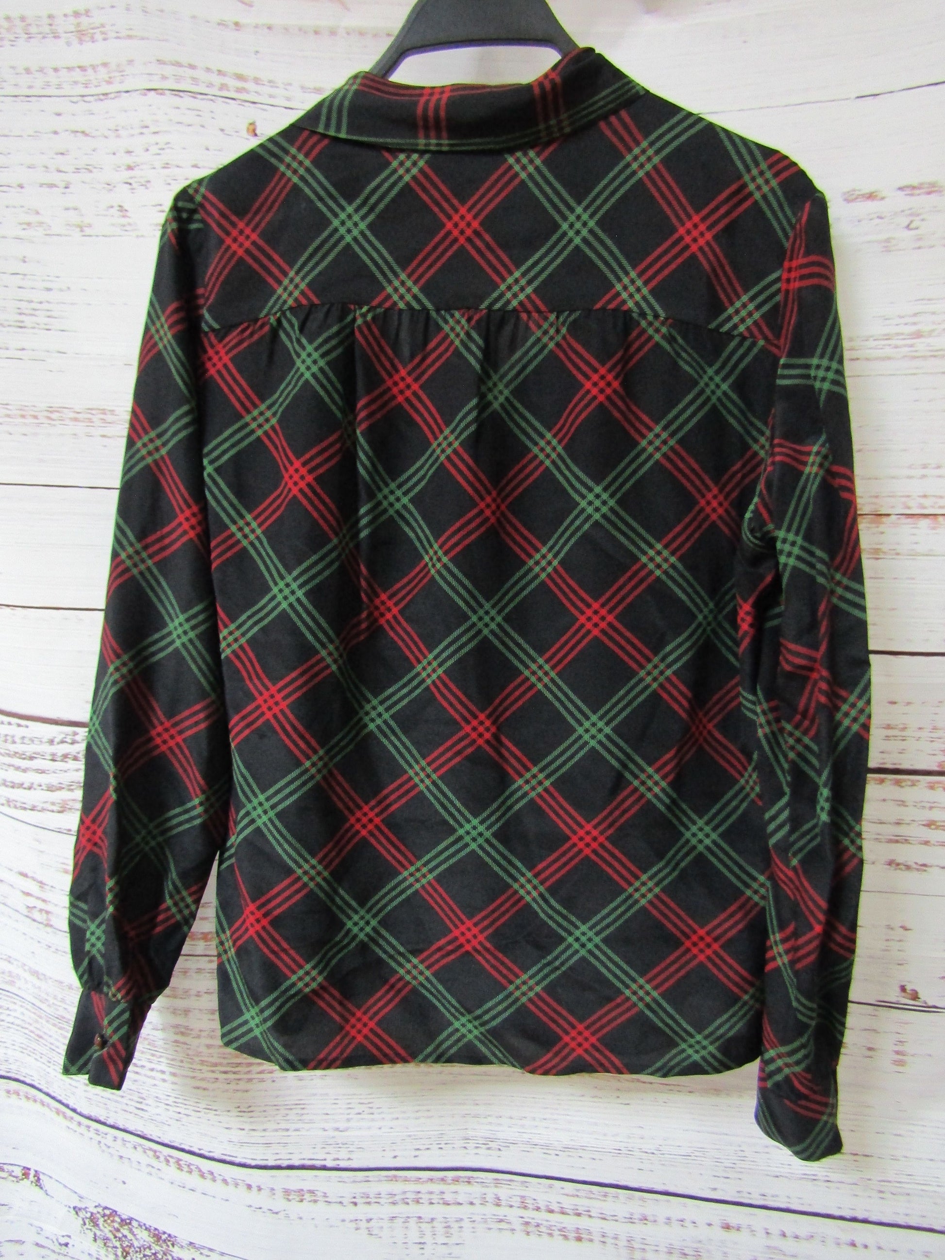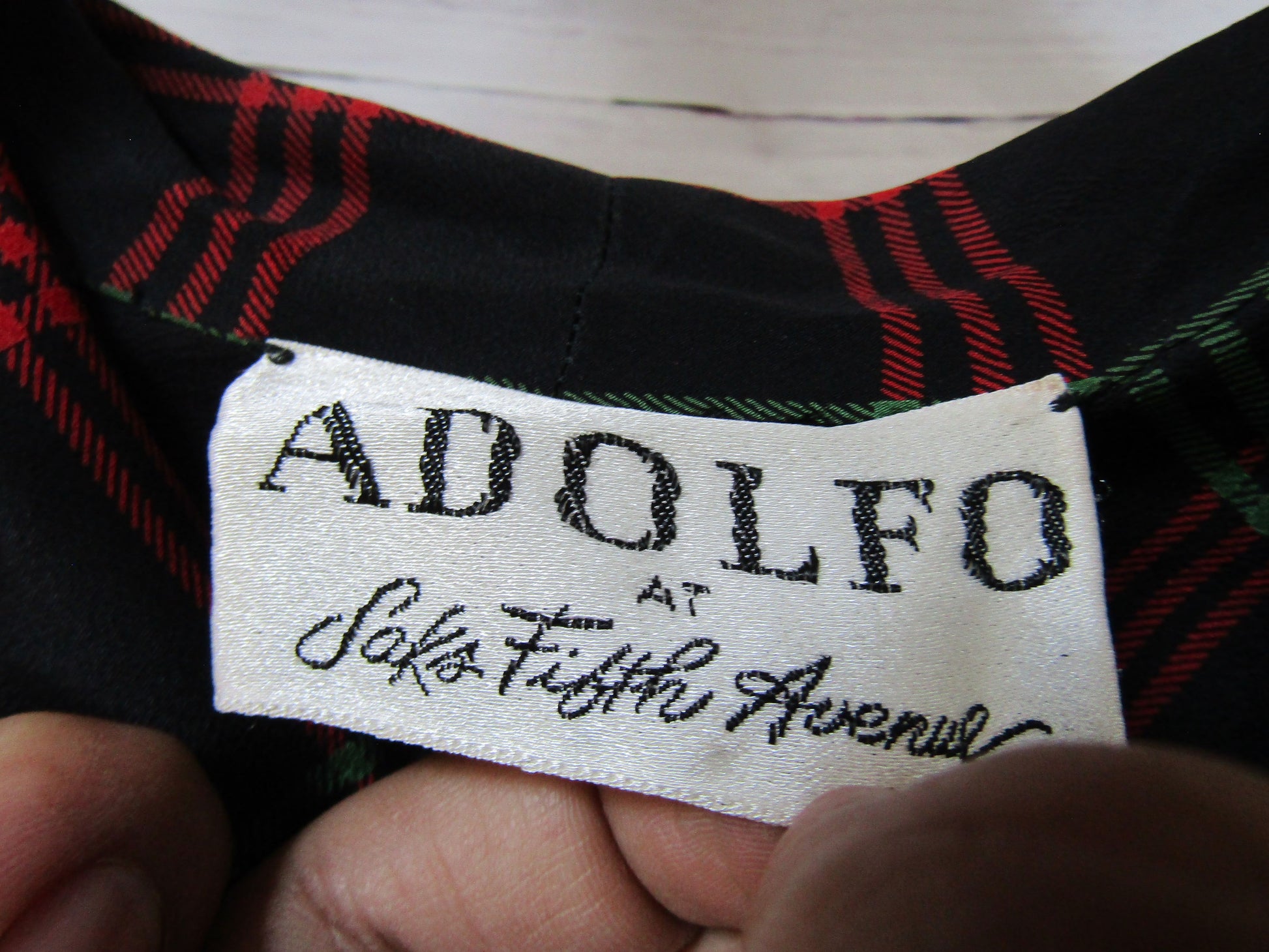 Vintage Adolfo at Saks Fifth Avenue Women's Red Green Plaid Silk Blouse Size S