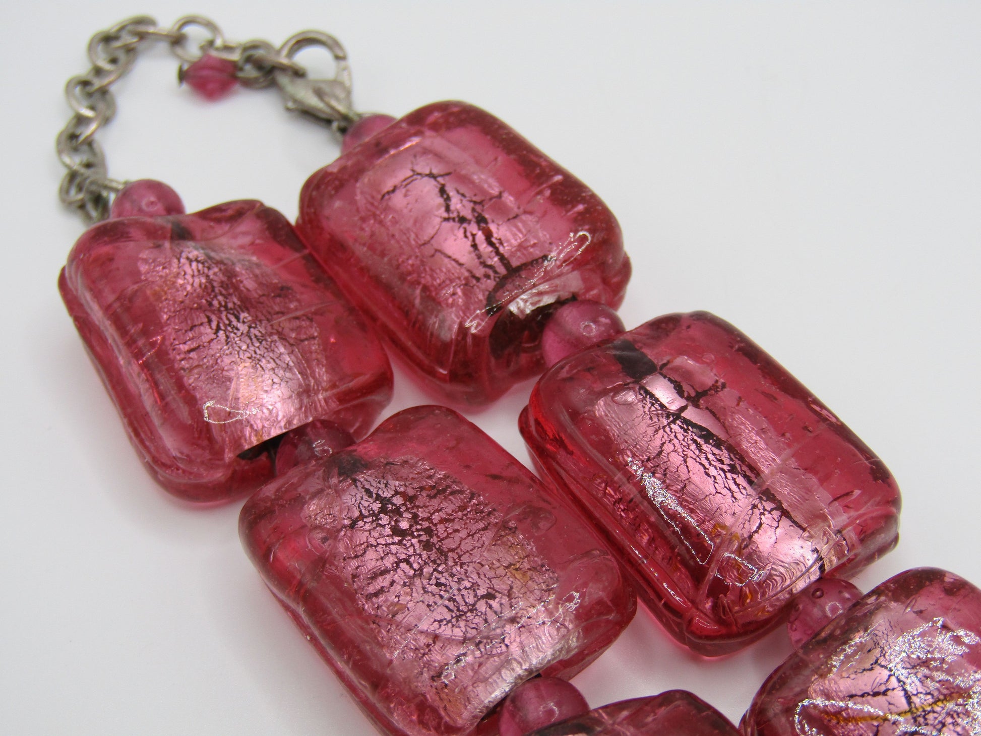 Vintage Artisan Handcrafted Silver Fleck Pink Glass Necklace
