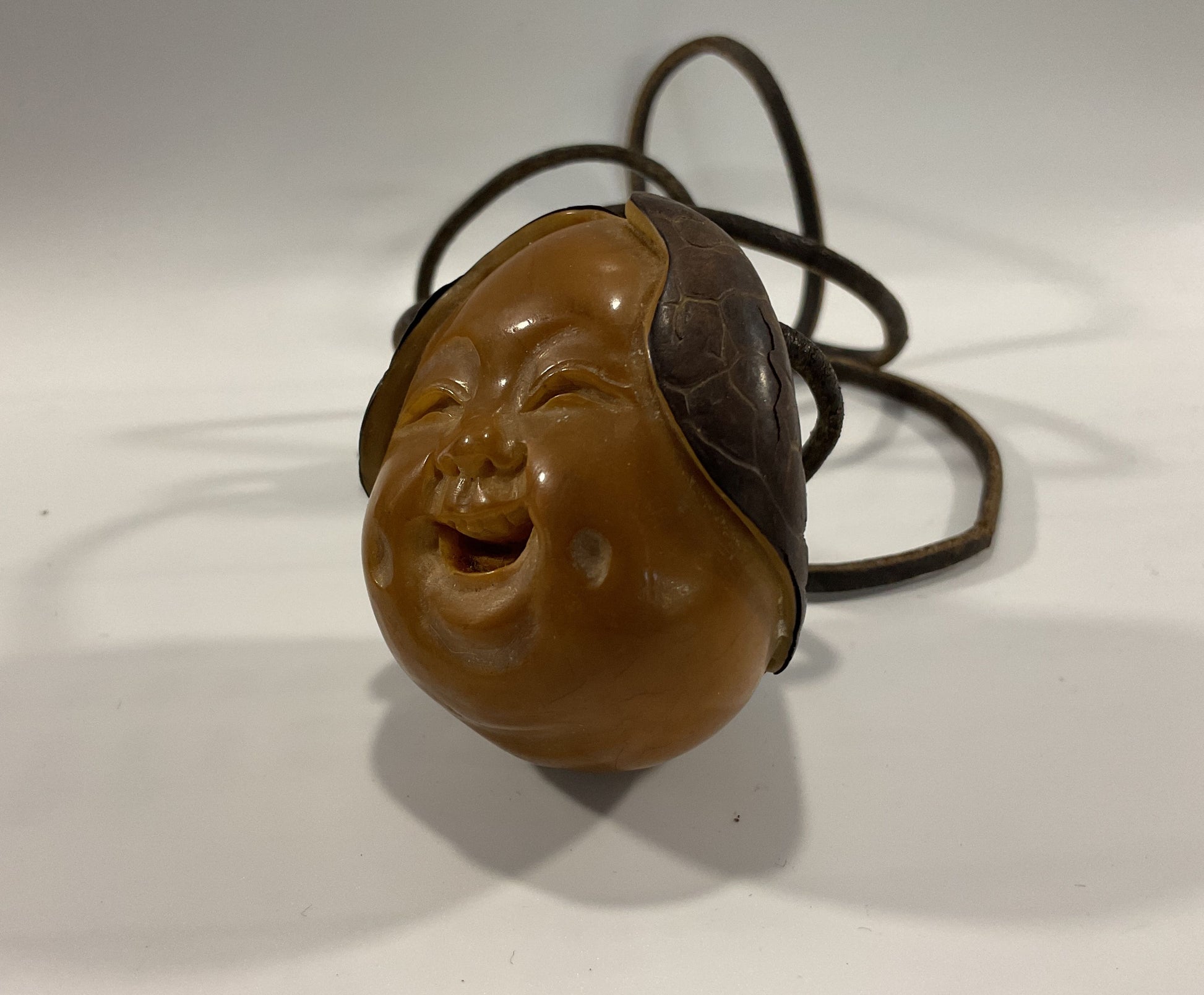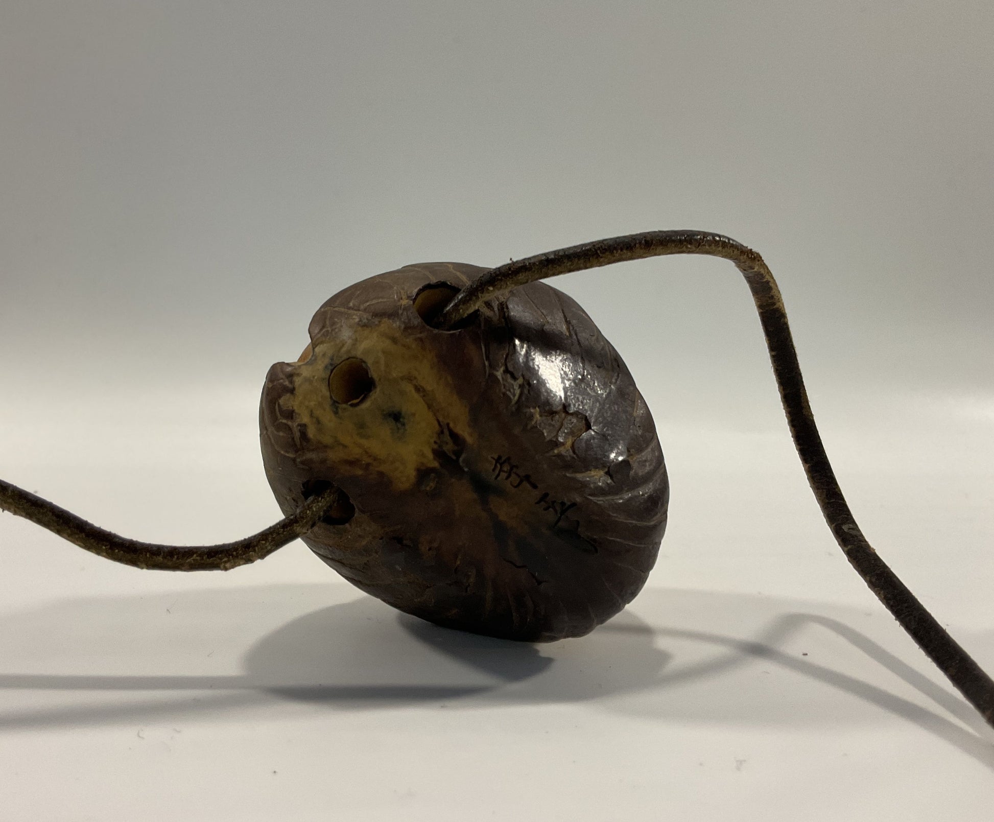 Vintage Artist Signed Hand Carved Japanese Tagua Nut Face Pendant Necklace