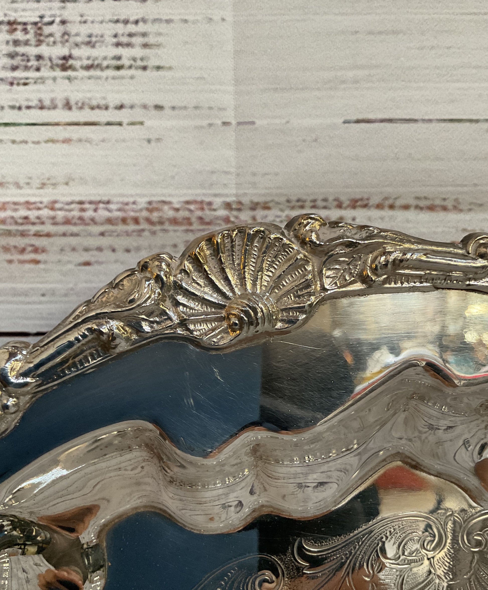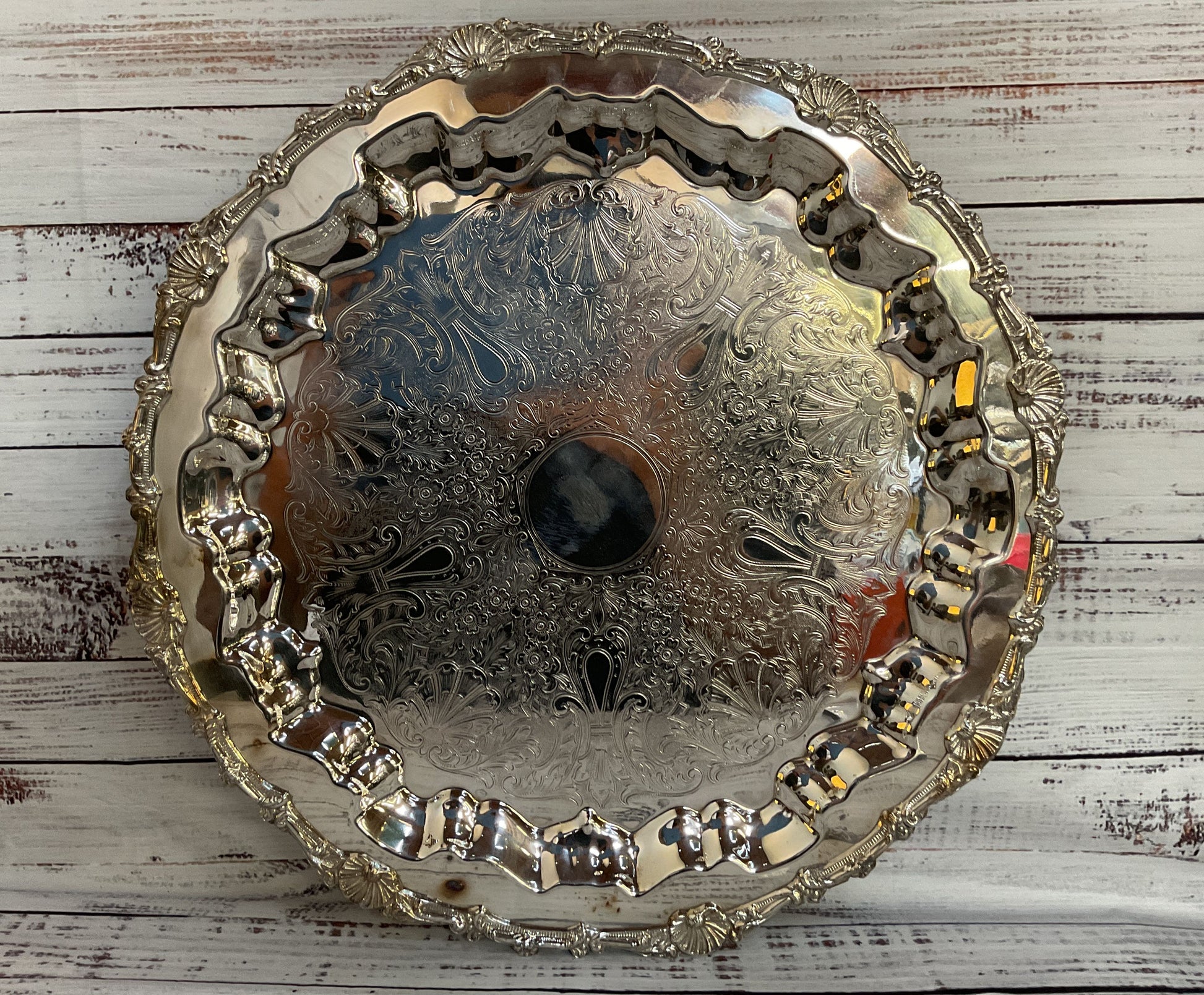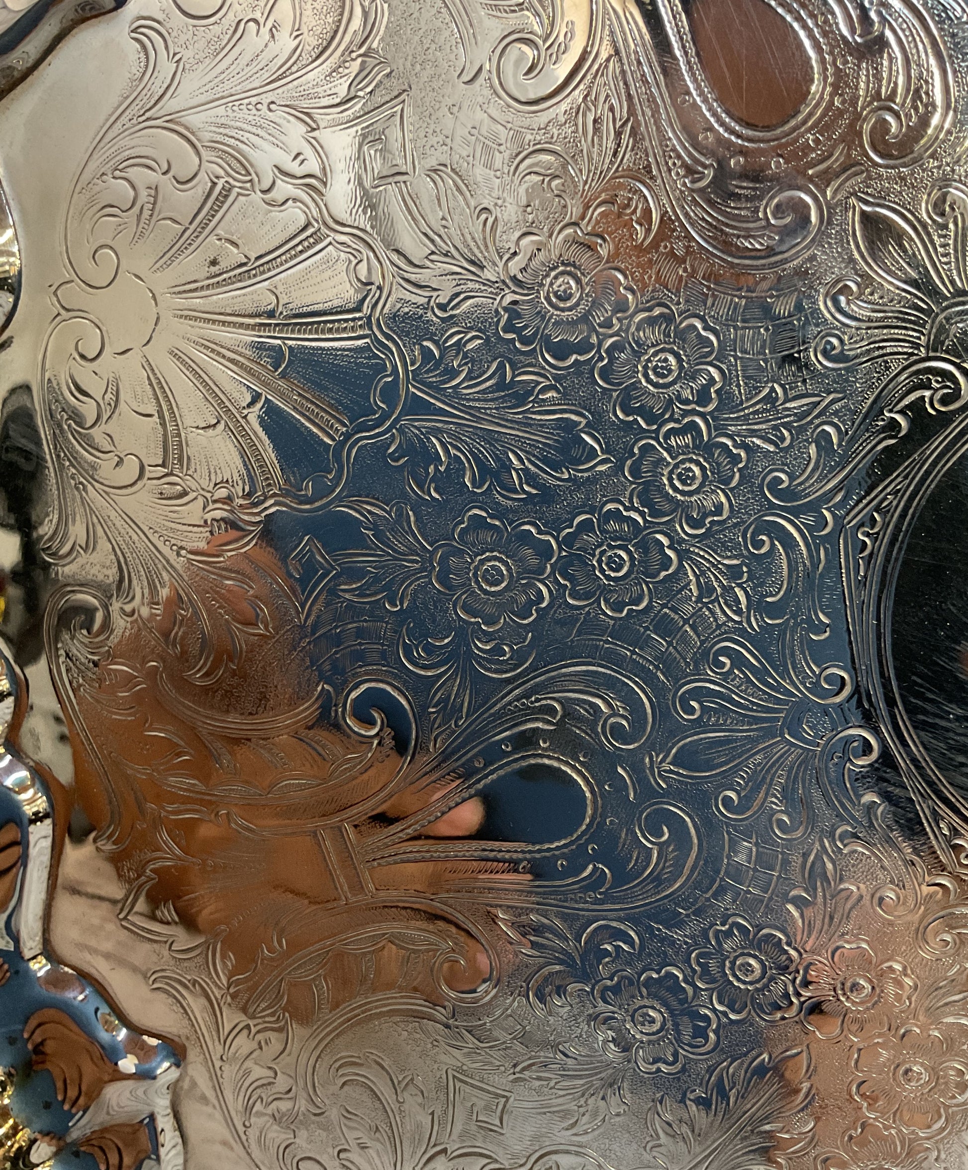 Vintage Crosby Ornate Floral Etched Baroque Silver Plated Platter