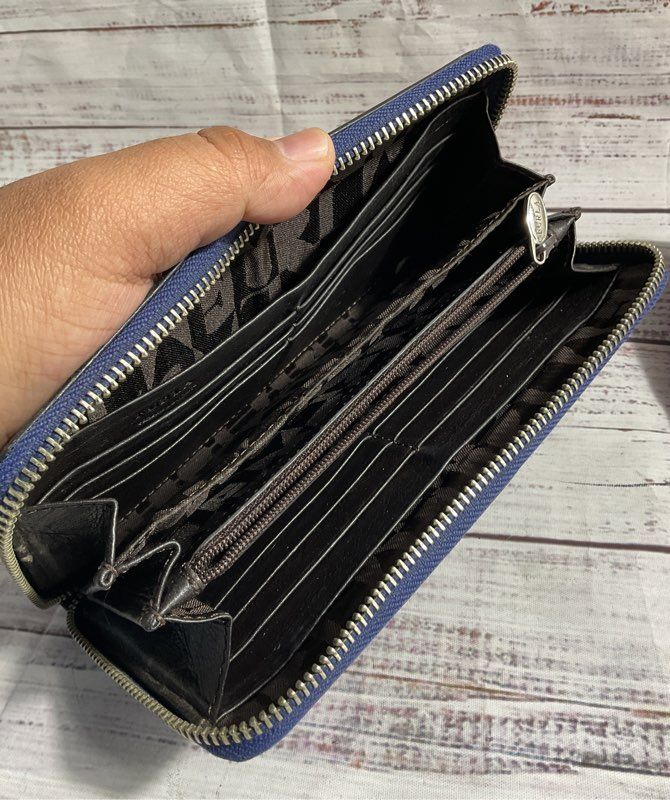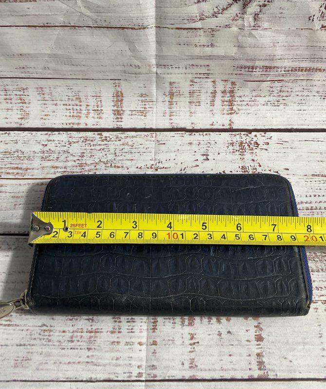 Vintage Furla Women's Genuine Leather Croc Embossed Clutch Purse Blue