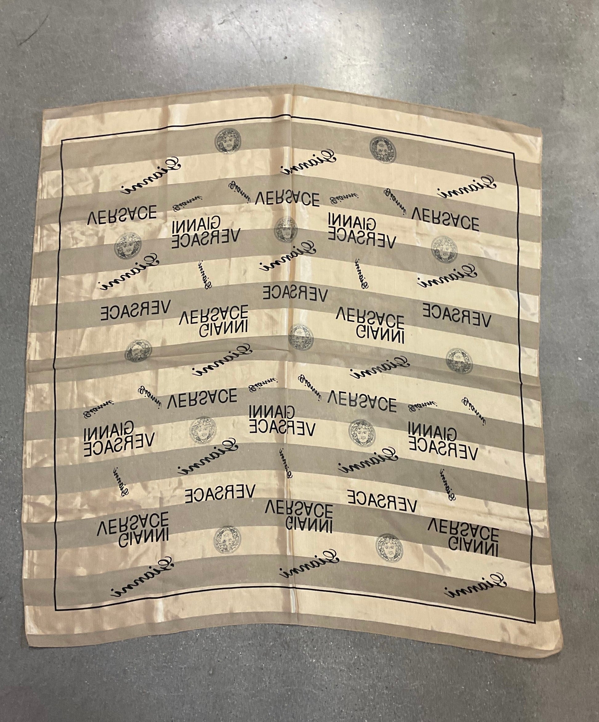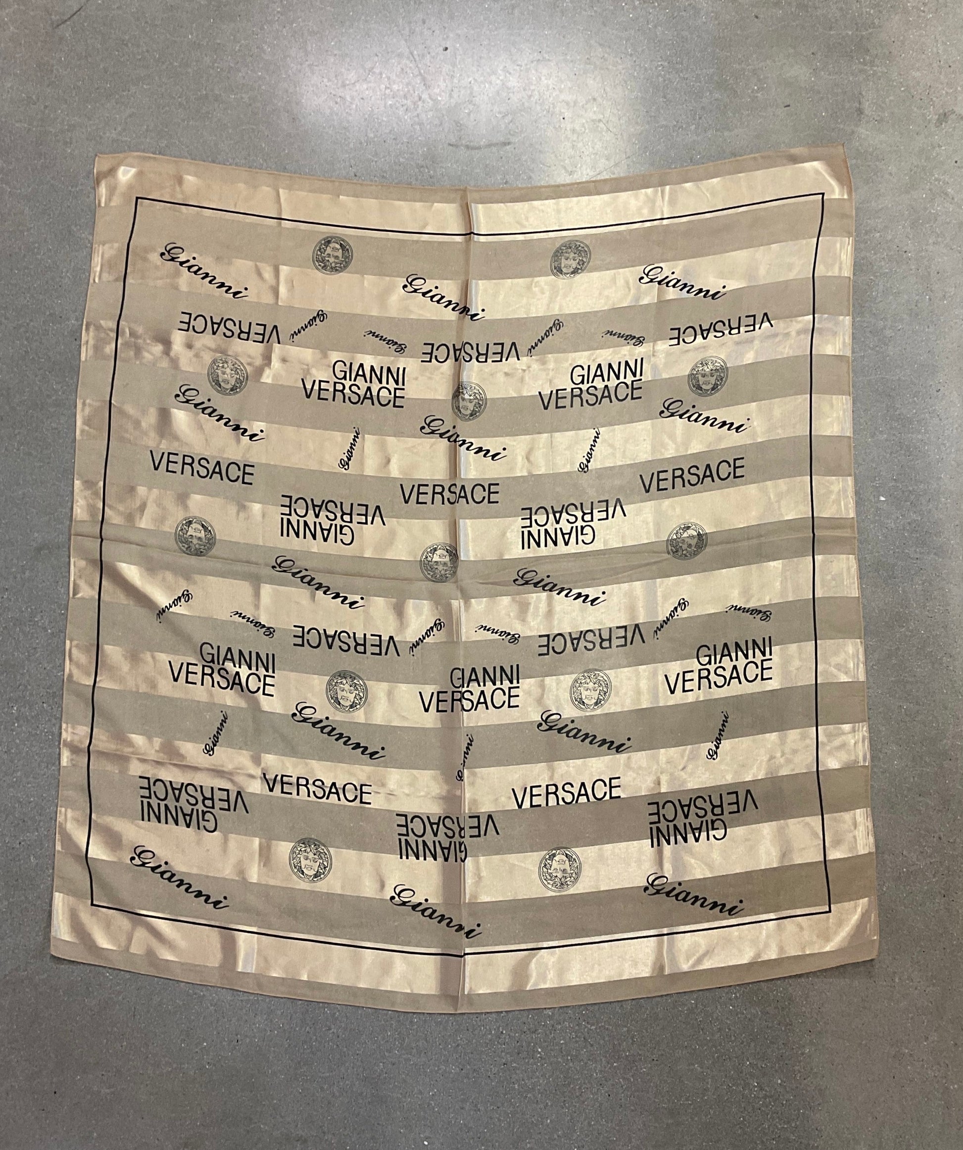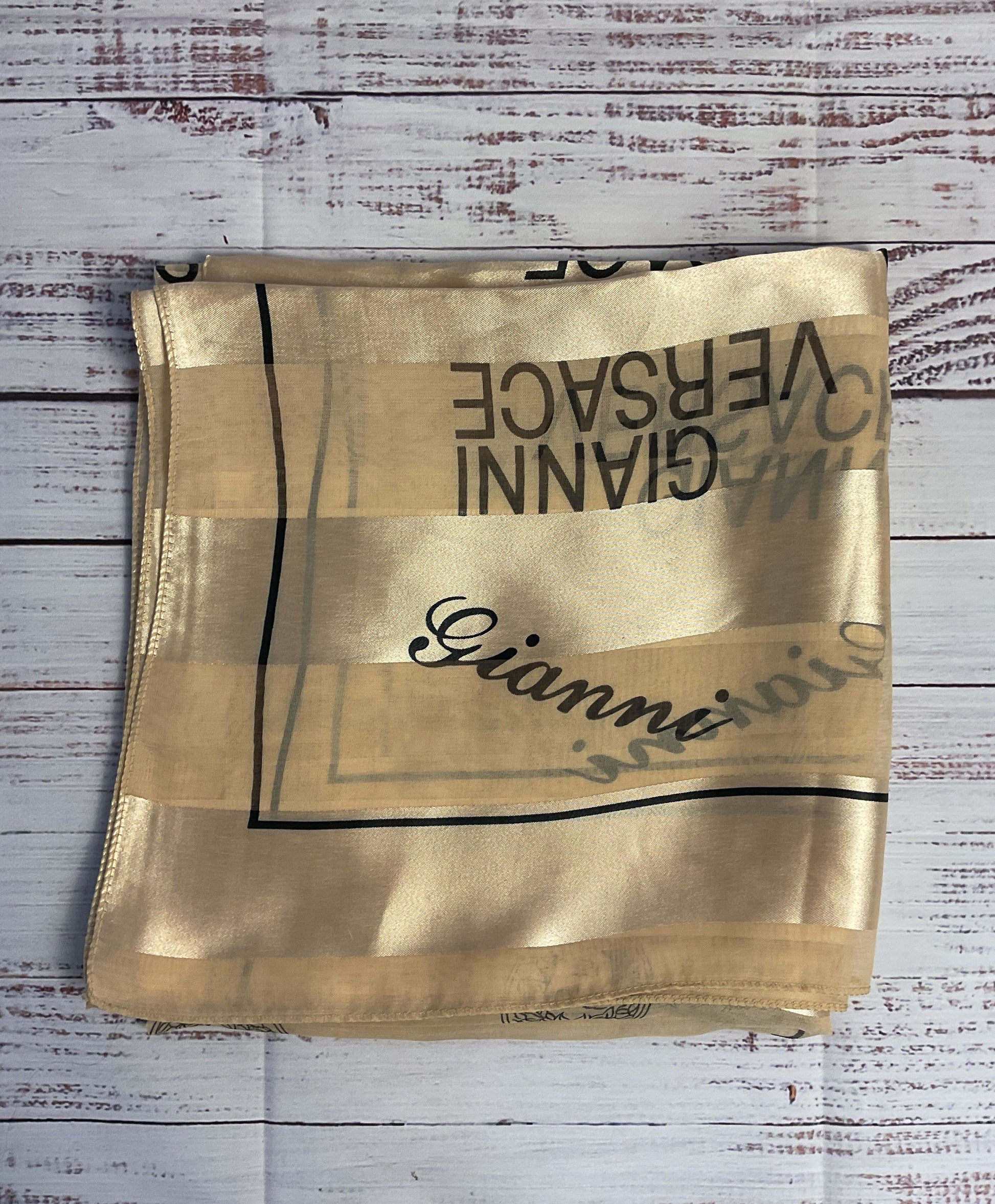Vintage Gianni Versace Large Gold Striped Scarf with Versace Print