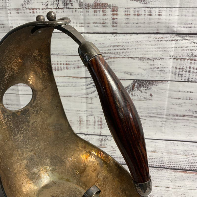 Vintage Hand Hammered Silverplate & Rosewood Italian Wine Caddy Bottle Holder