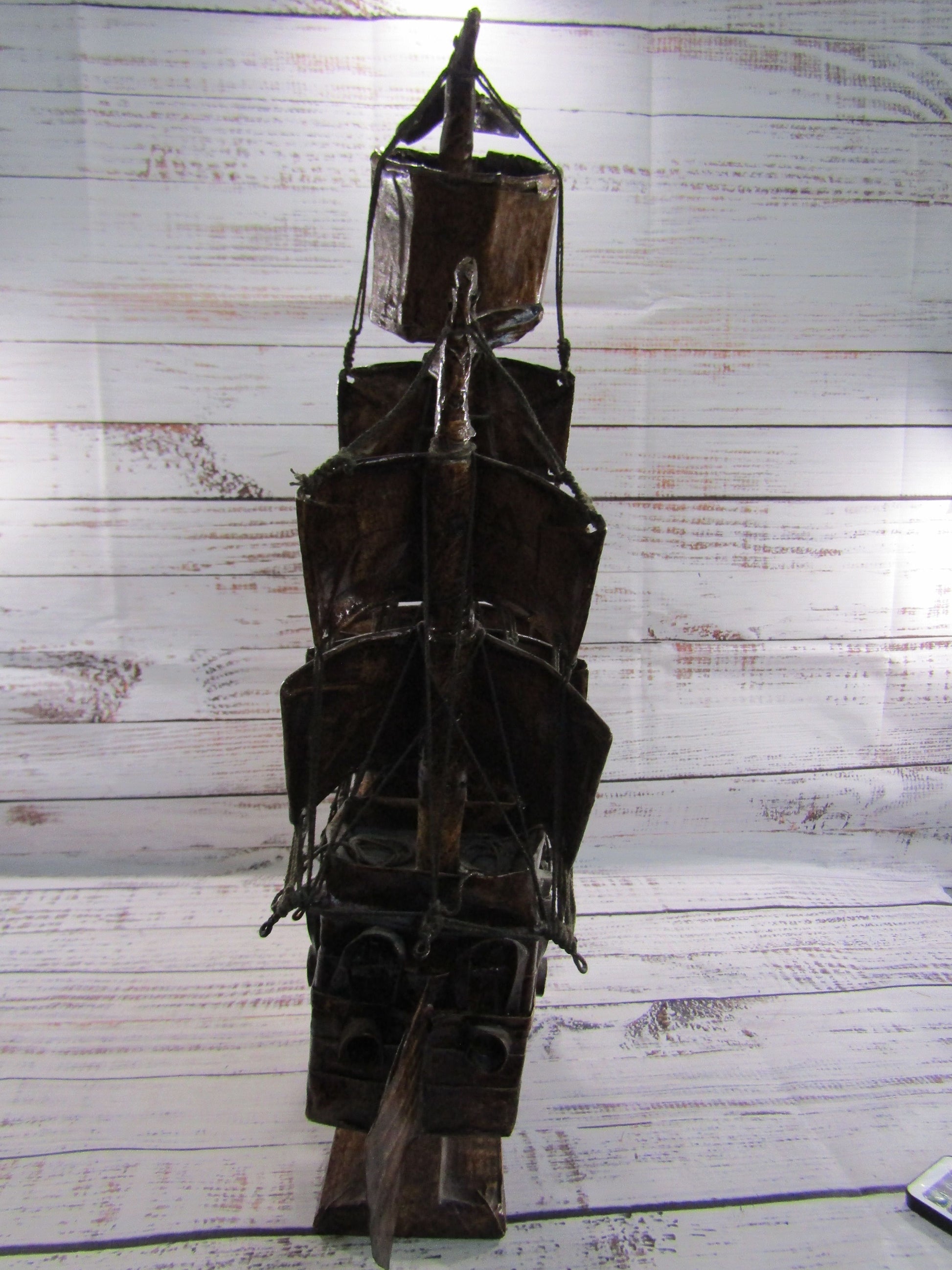 Vintage Handcrafted Paper Mache Sailboat Figurine