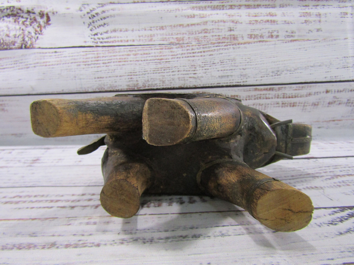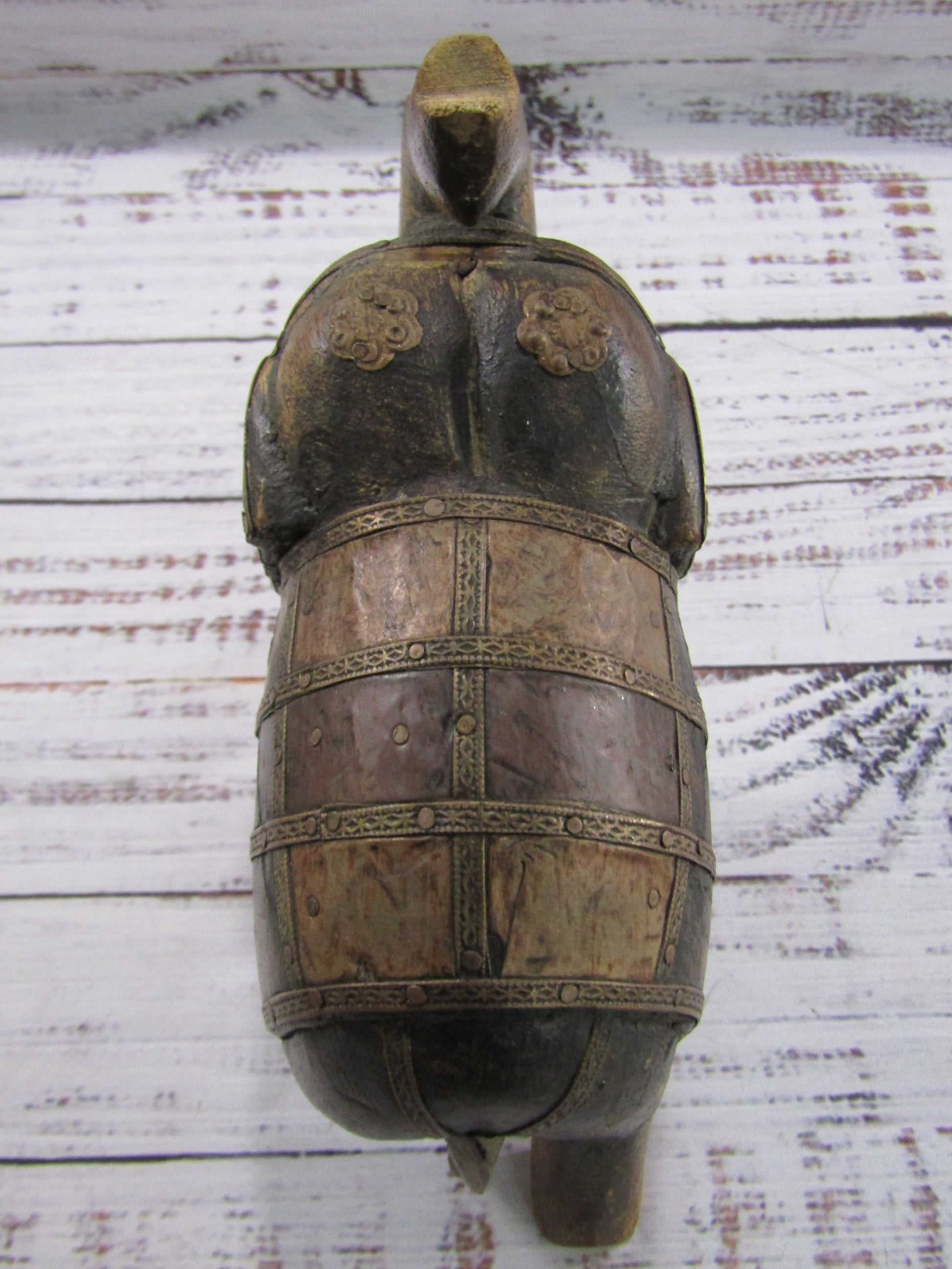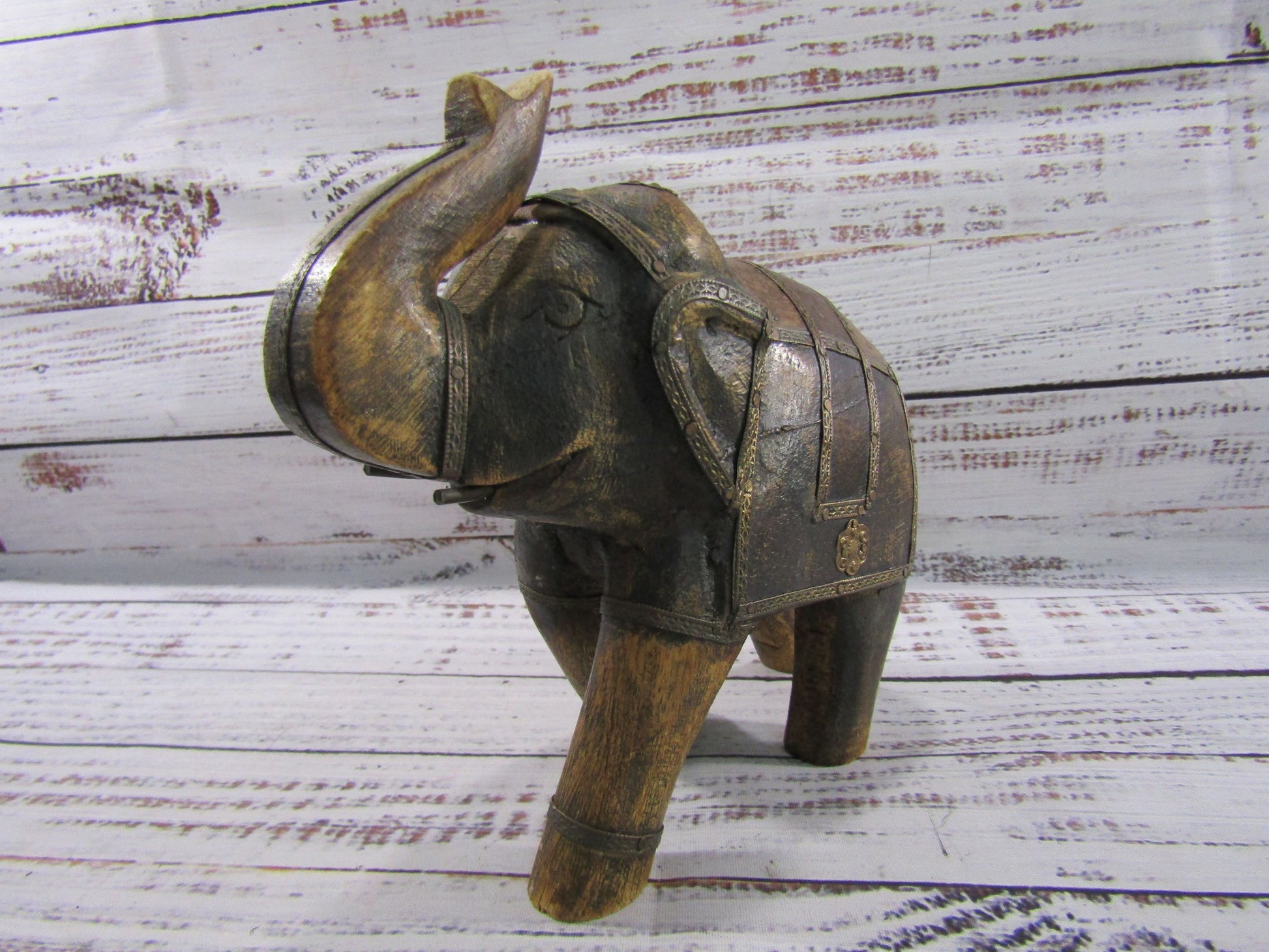 Vintage Handcrafted Wood Carved Brass Accent Elephant Figurine