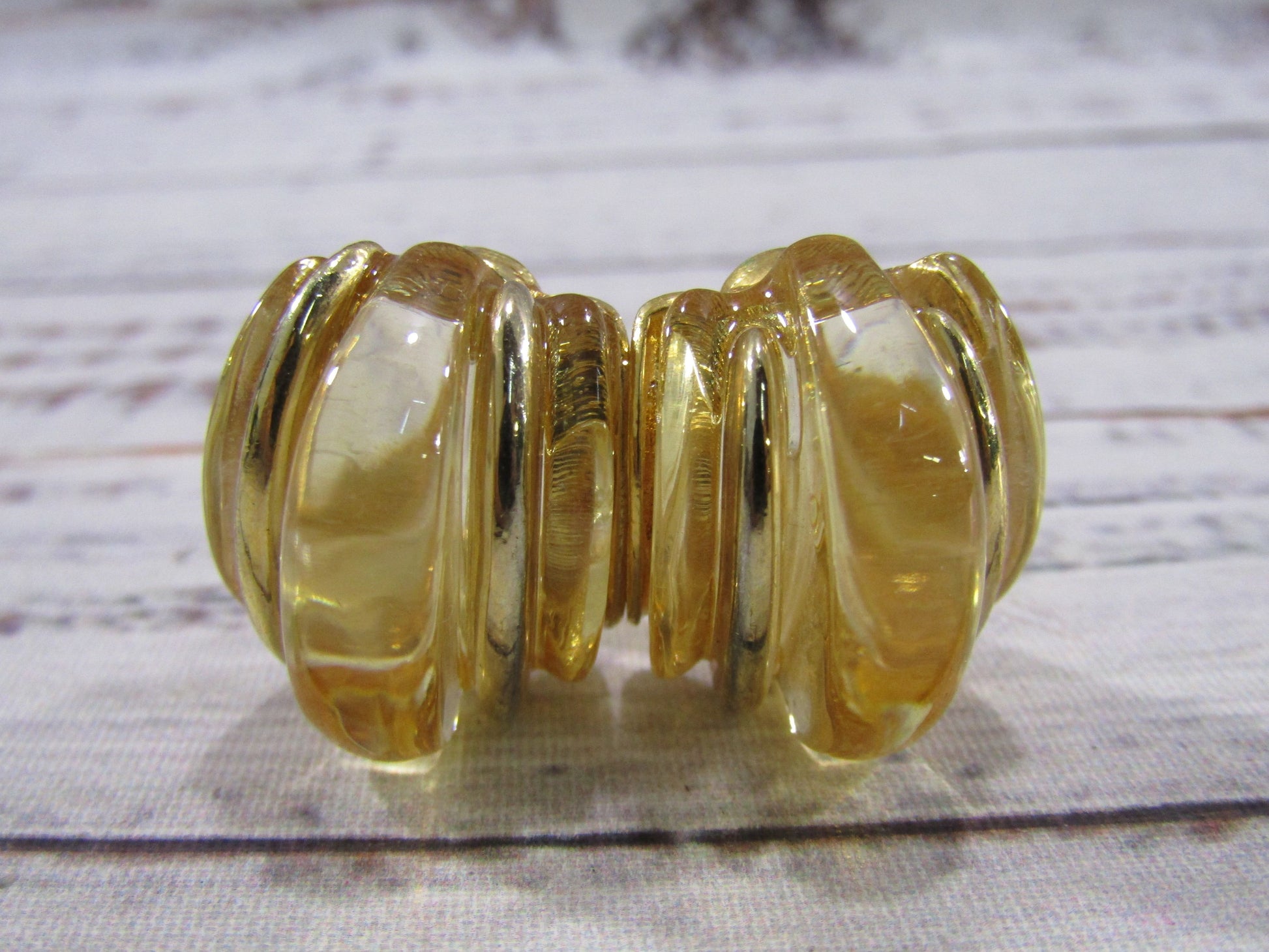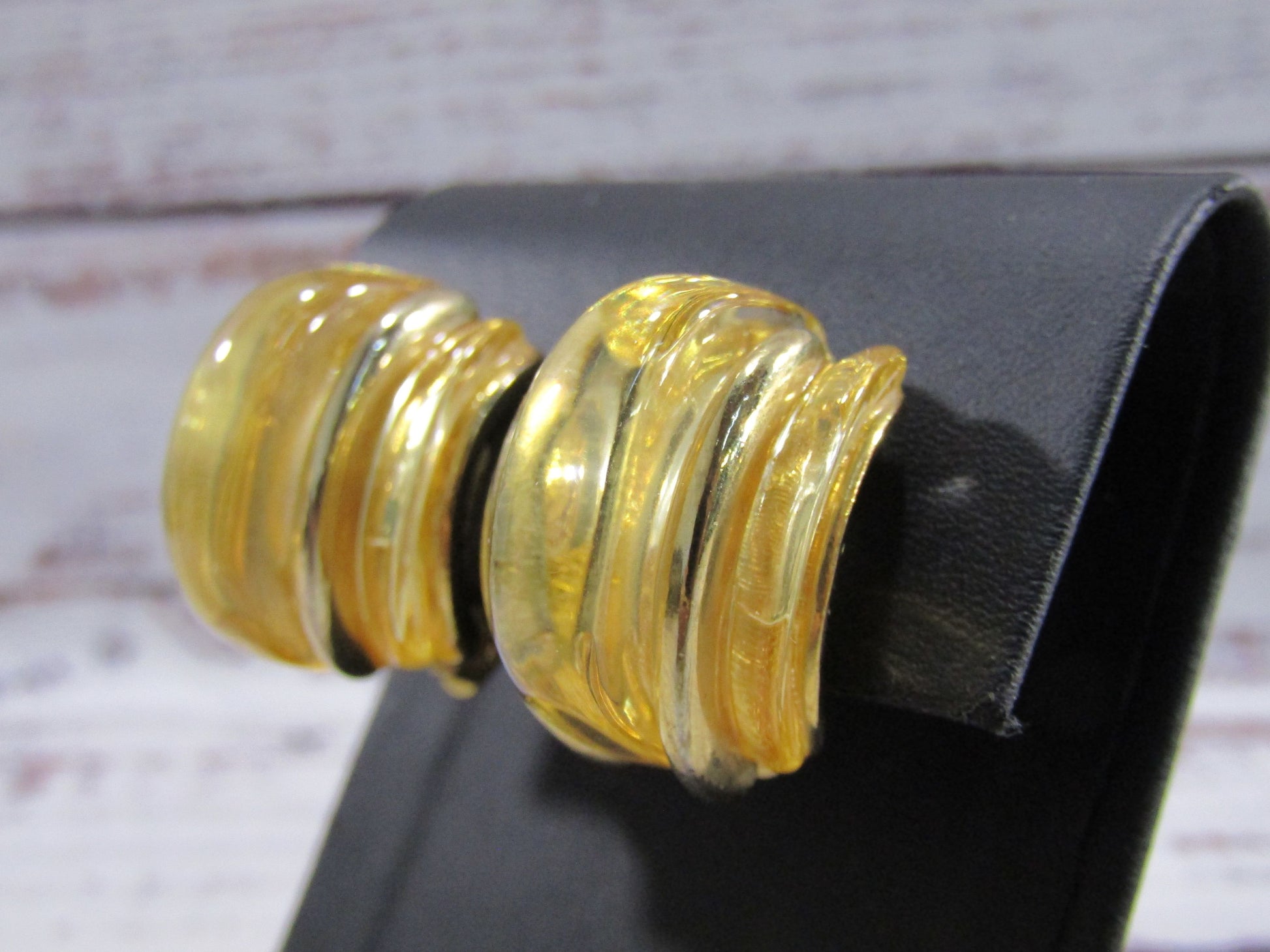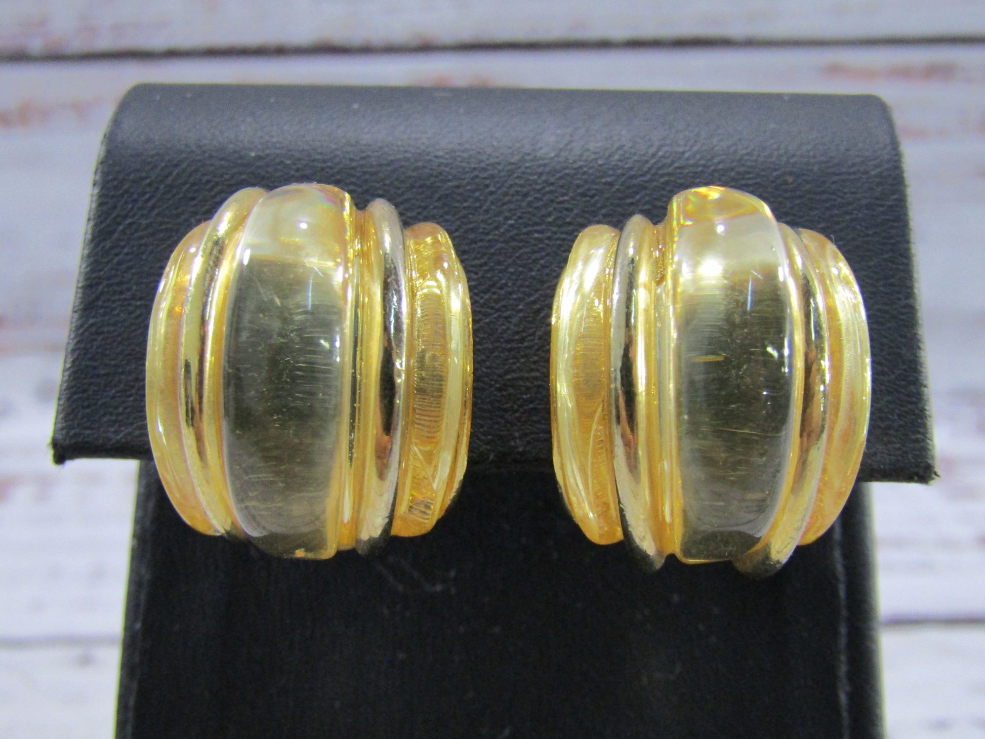 Vintage Kenneth Jay Lane Chunky Gold Plated Lucite Clip-On Earrings