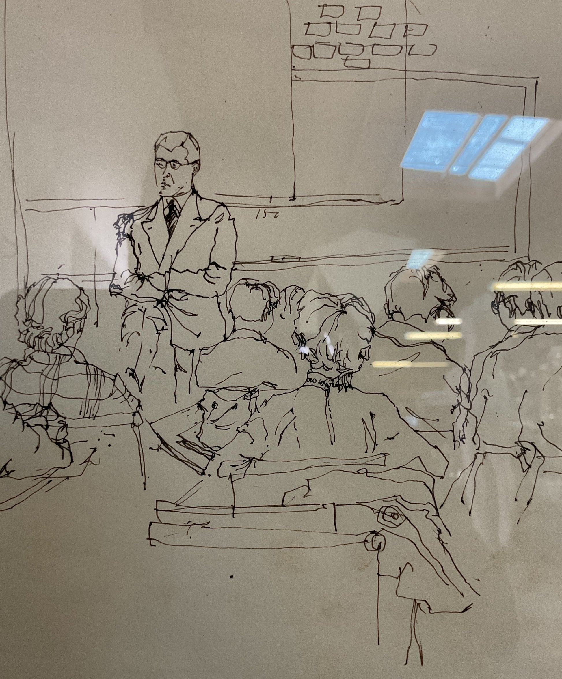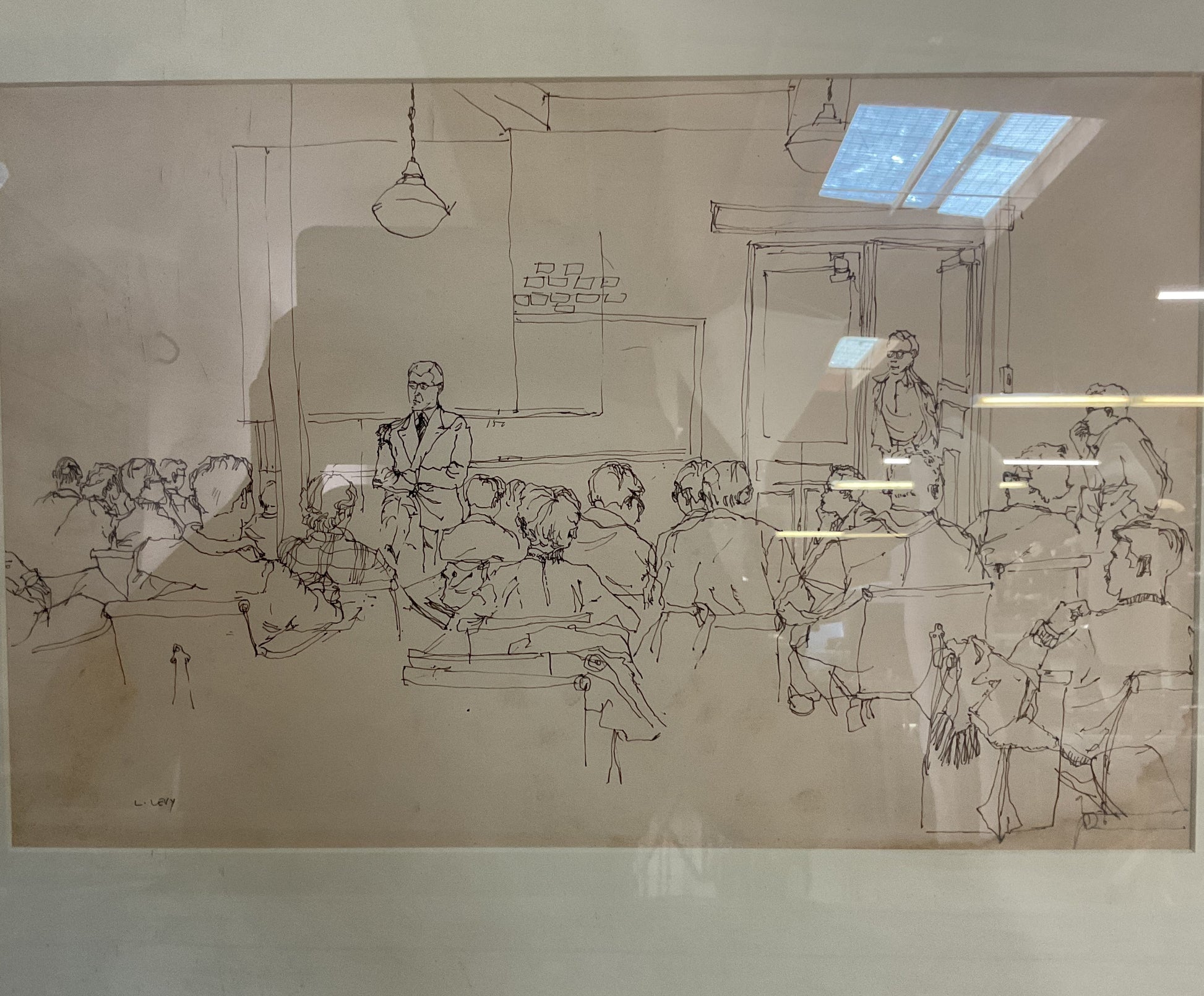 Vintage L. Levy Classroom Courtroom Gathering Pen Sketch