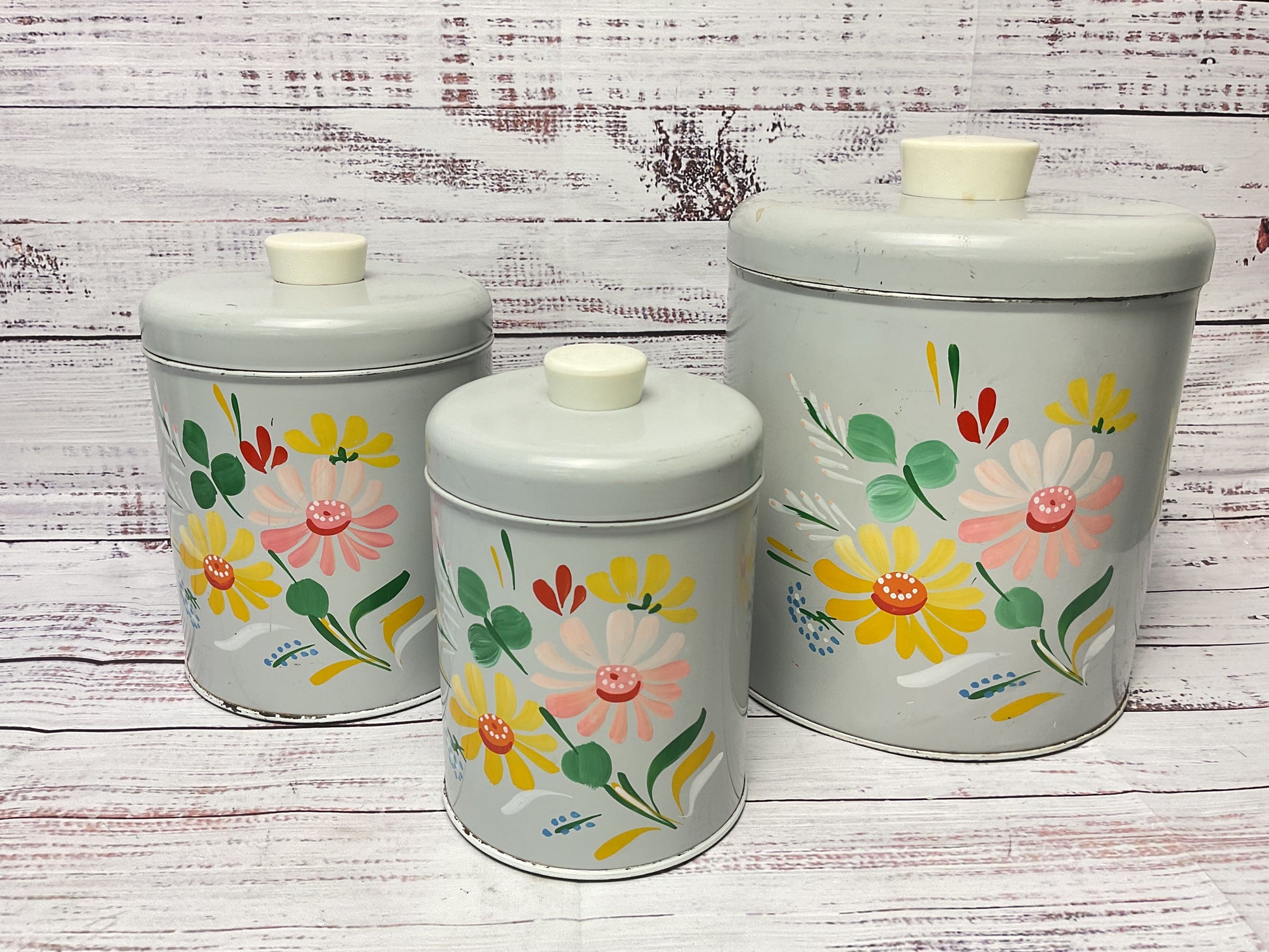 Vintage Ransburg USA Genuine Hand Painted Nesting Canister Set of 3 7",5",4"