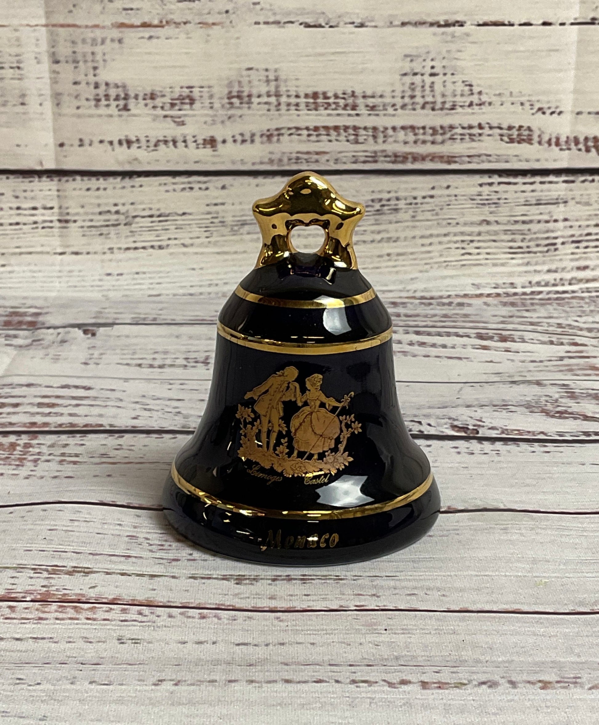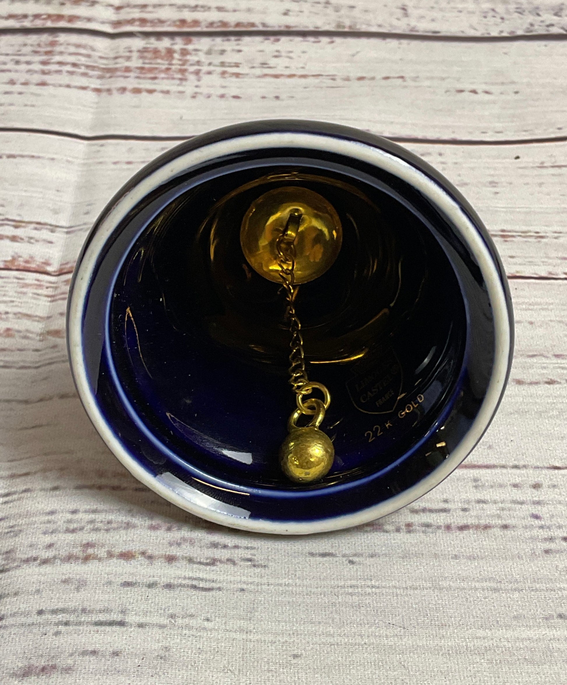 Limoges Castel France Navy Vintage Rococo 'Courting Couple' 22k Gold Bell