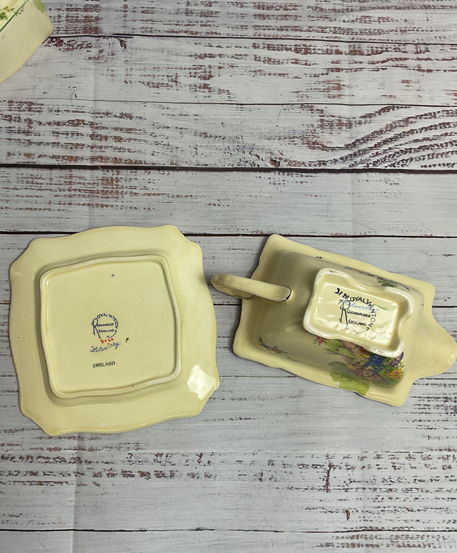 Vintage Royal Winton Set Of 5 Serveware Set- Trays, Gravy Boat, Butter Dish
