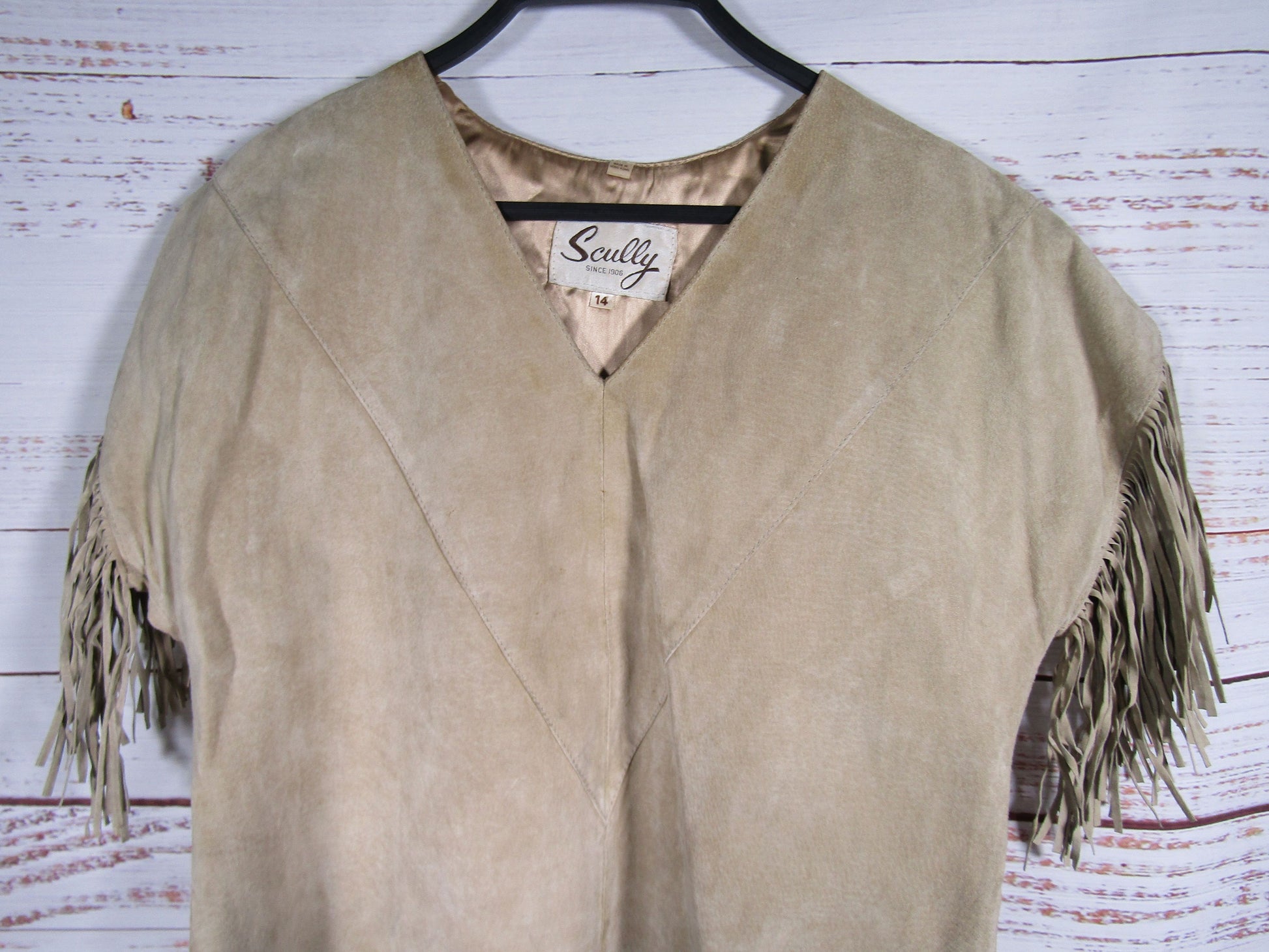 Vintage Scully Women's Beige Leather Fringe Top Size 14