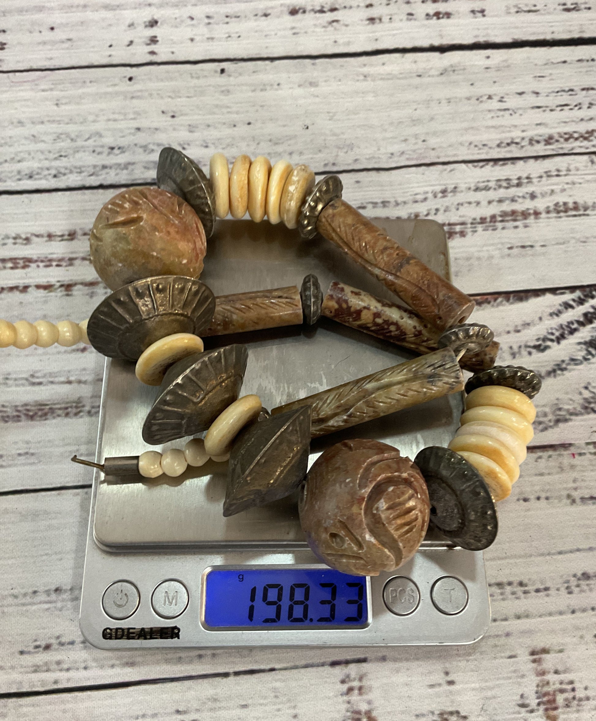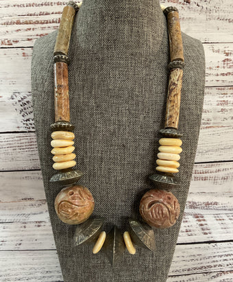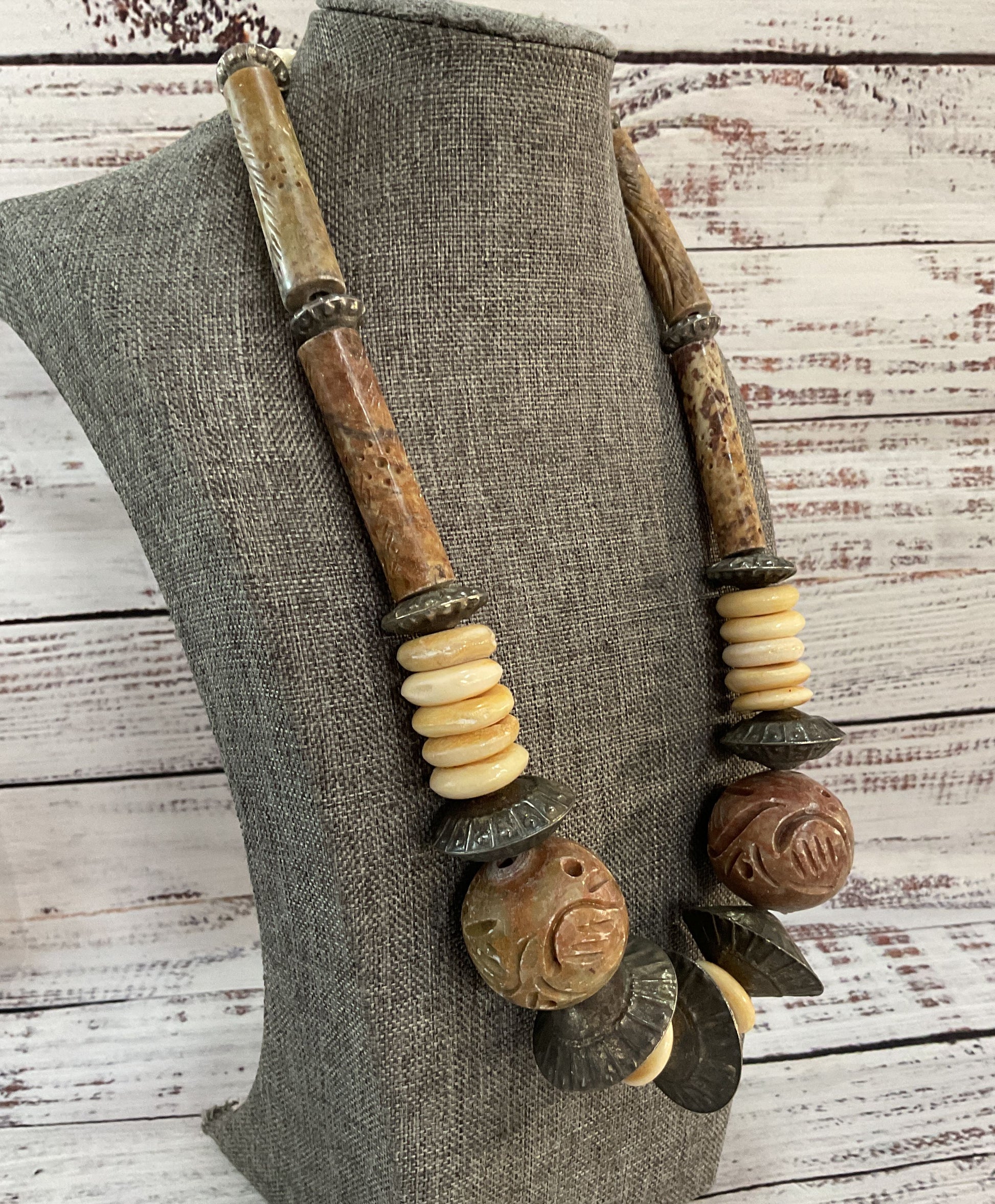 Vintage Tribal Hand Carved Soapstone Silver Plated Disc Necklace