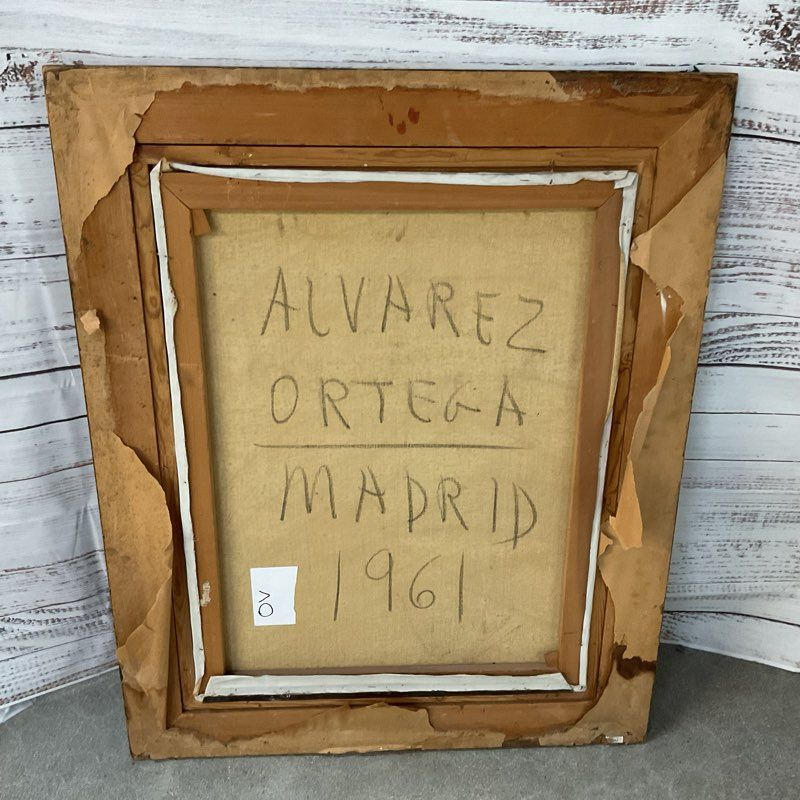 Description: VTG. 1961 ALVAREZ ORTEGA Little Girl Sitting Oil Painting on Canvas- FRAMED 41" X 33" PAINTING Framed