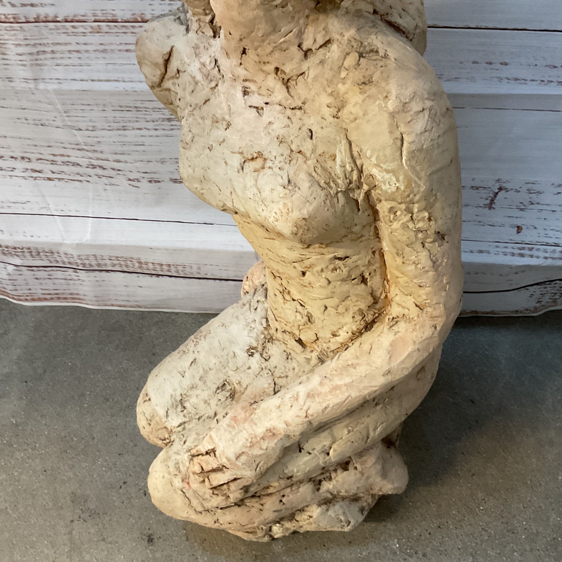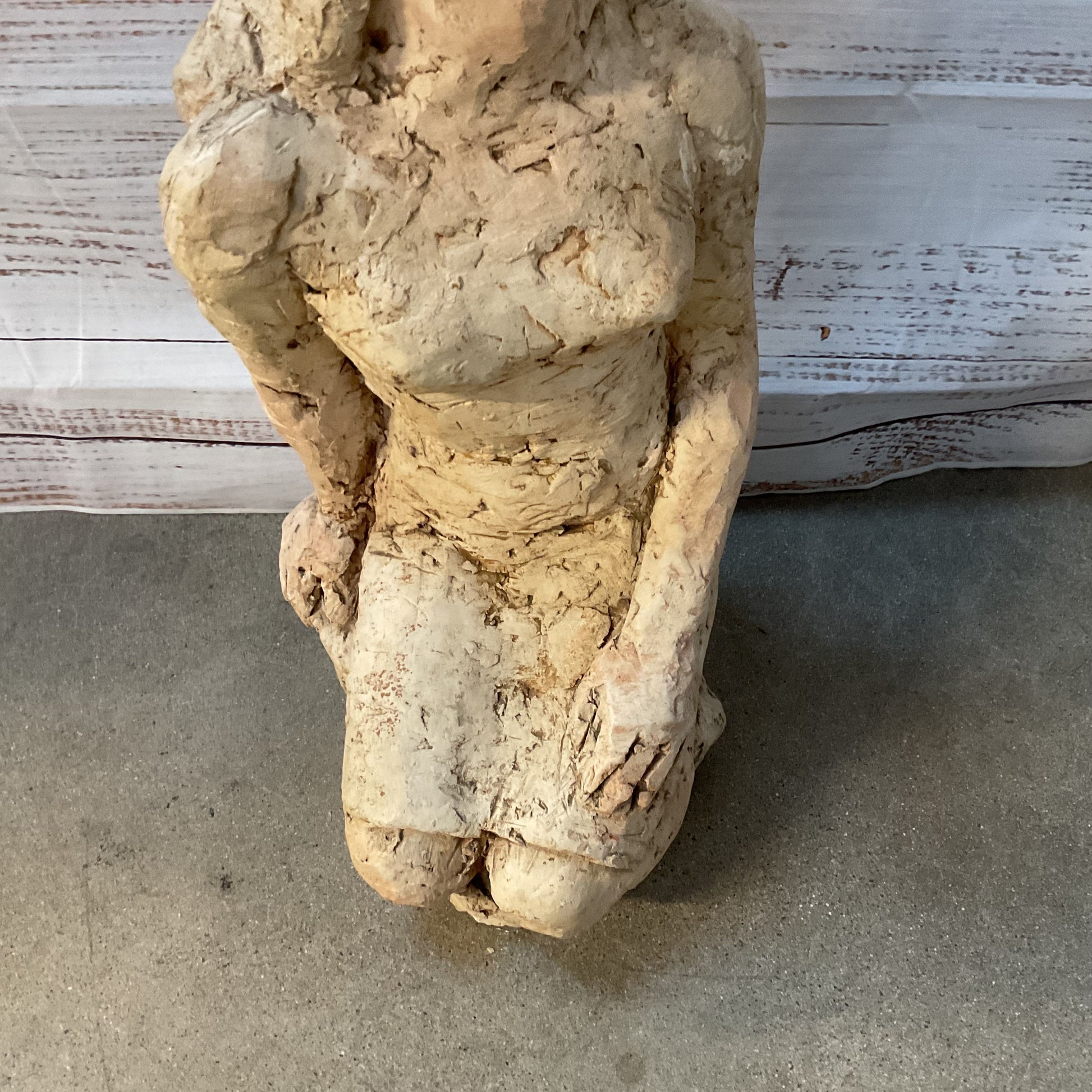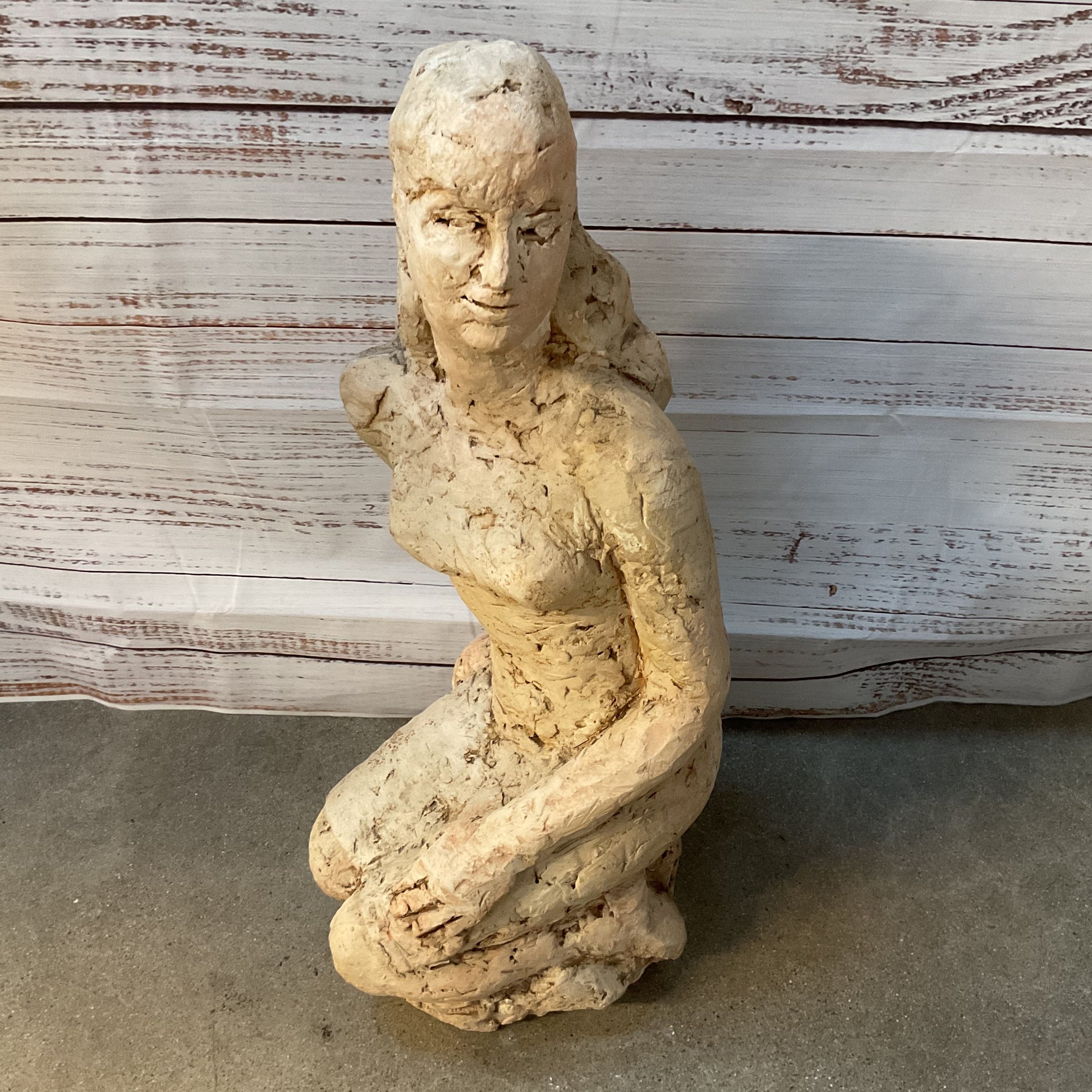 Description: VTG./ANTIQUE Signed Clay Sculpture of Young Woman- 29' SCULPTURE Signed.