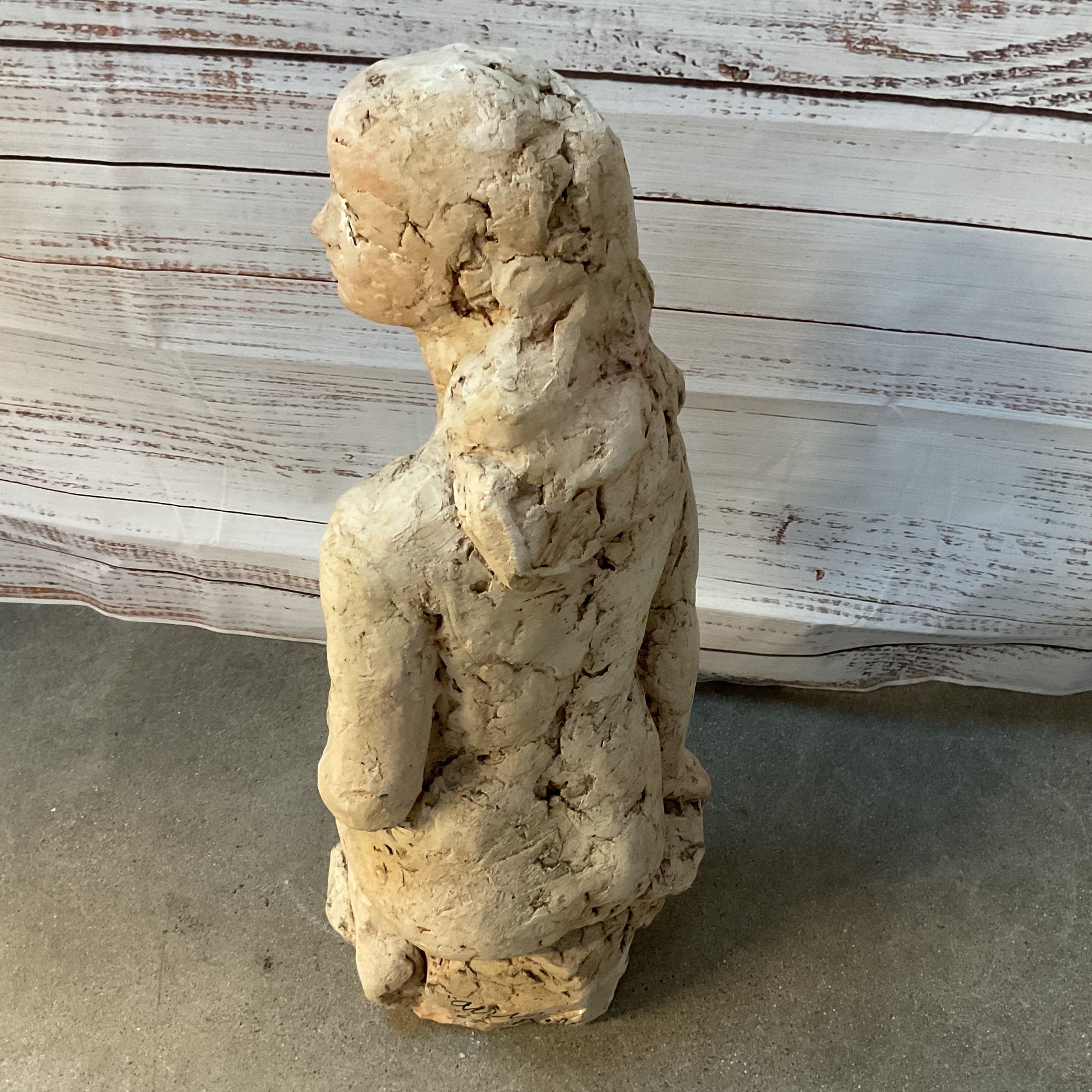 VTG. 1965 Signed Terracotta Clay Sculpture of Young Woman- 29"