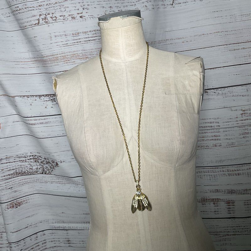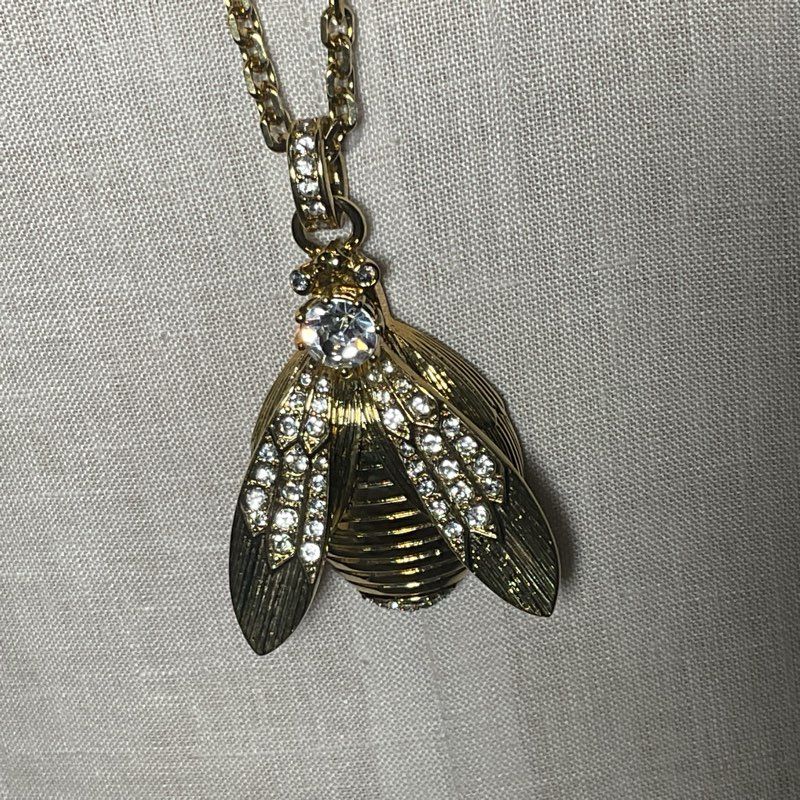 VTG. ANN TAYLOR Gold Tone & Rhinestone Bee 34" Chain Necklace