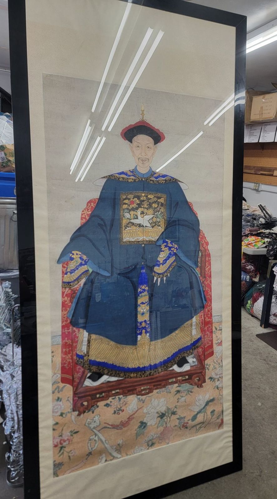 VTG./ANTIQUE Japanese Ancestry Painting of Man Sitting on Throne- LARGE 93x43.5"