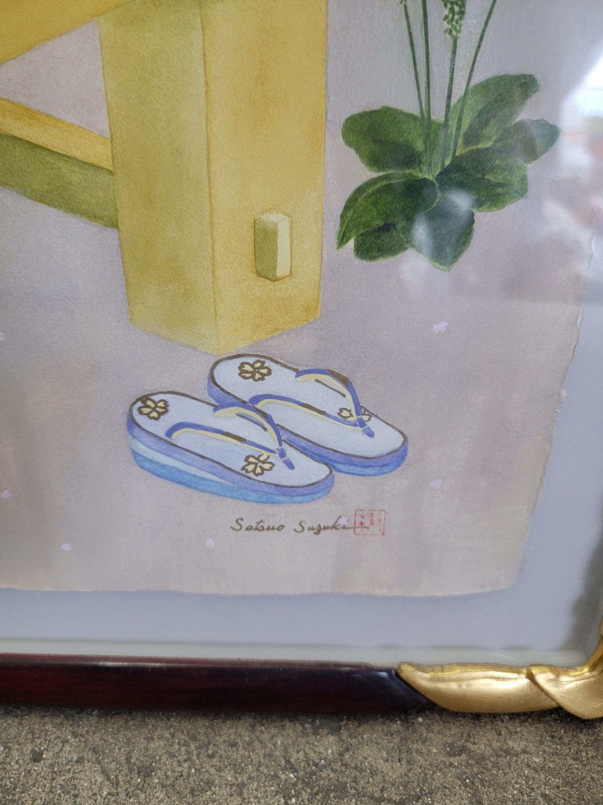 VTG./ANTIQUE Signed Japanese SATSUO SUZUKI Geisha Silk Painting- FRAME 27" X 35"