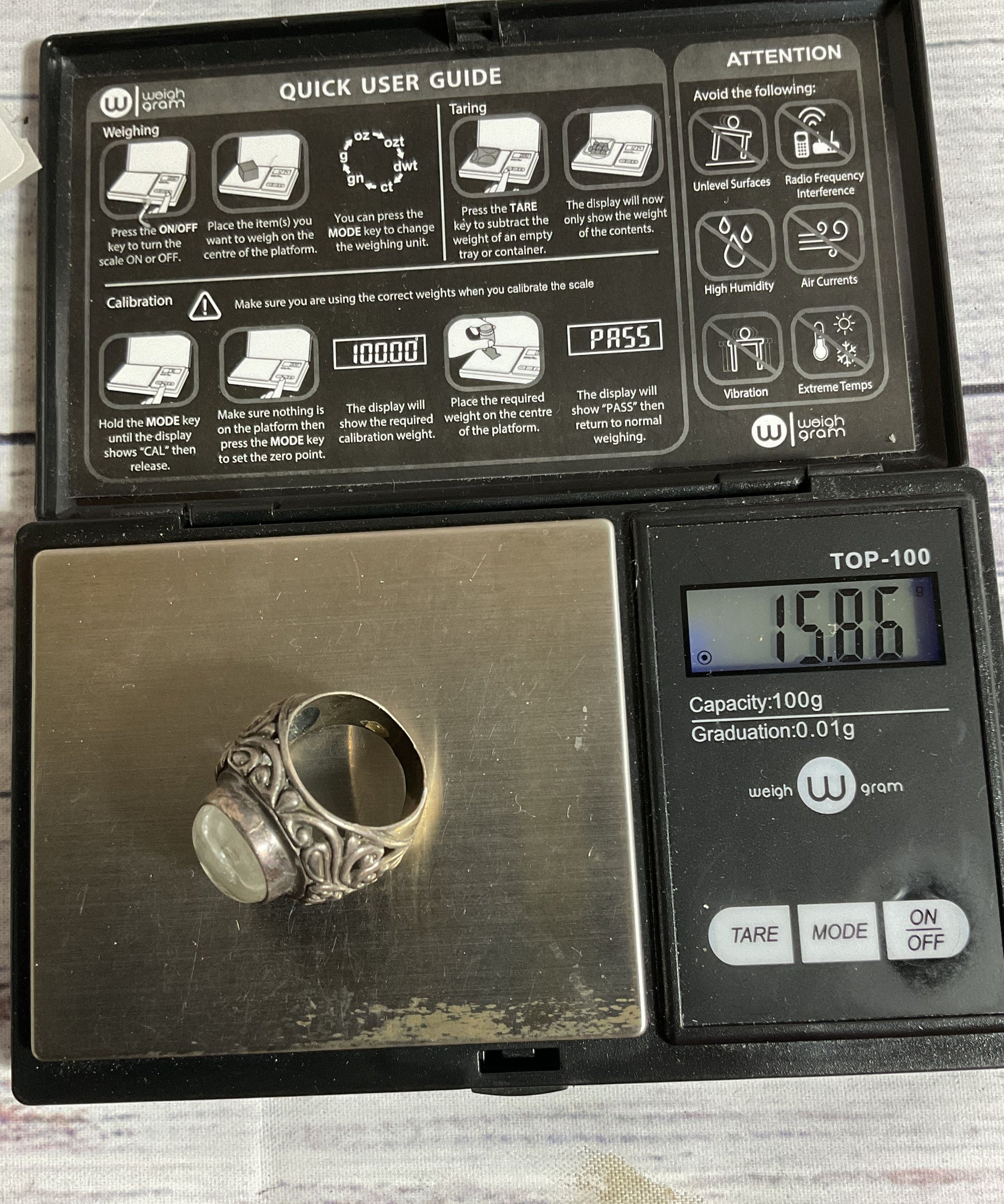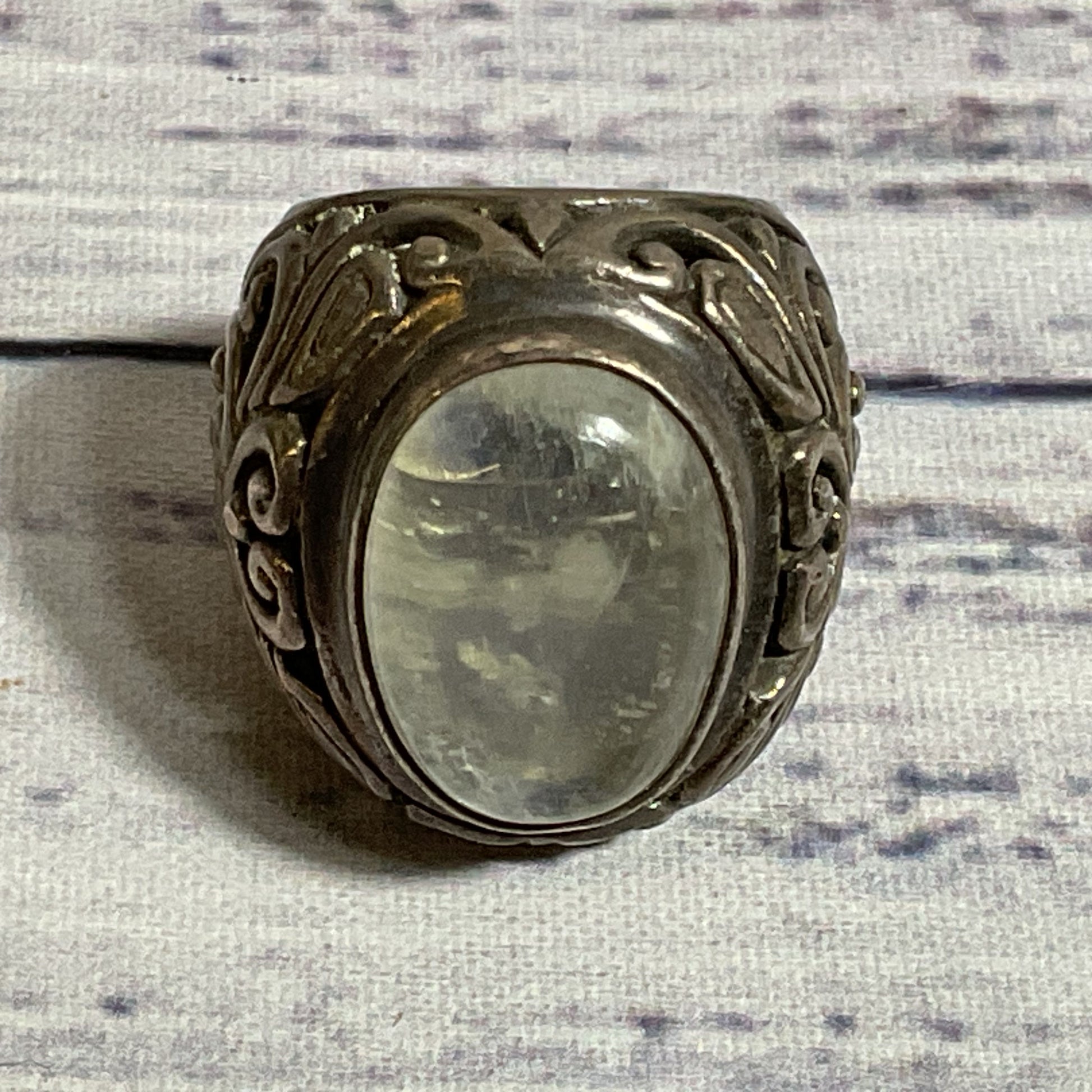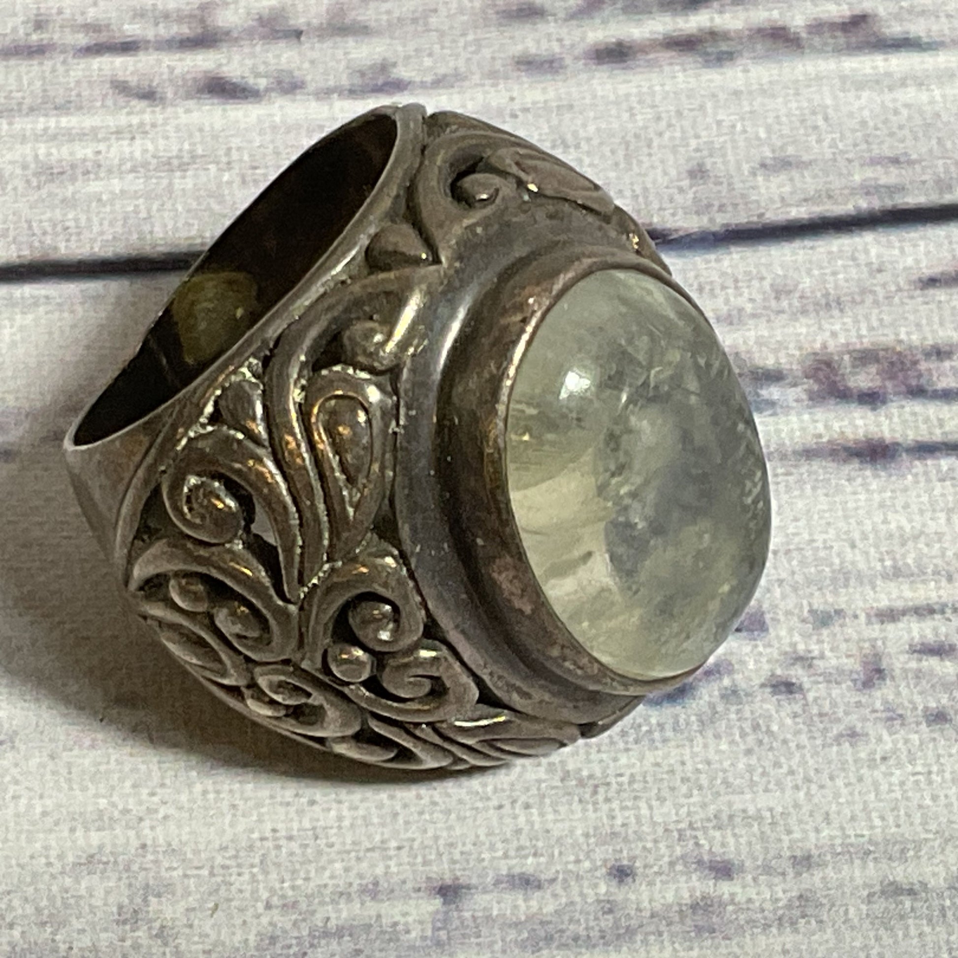 VTG./ANTIQUE Sterling Silver & Cabochon Moonstone 1" Wide SZ 5.75 Ring- 15.86g