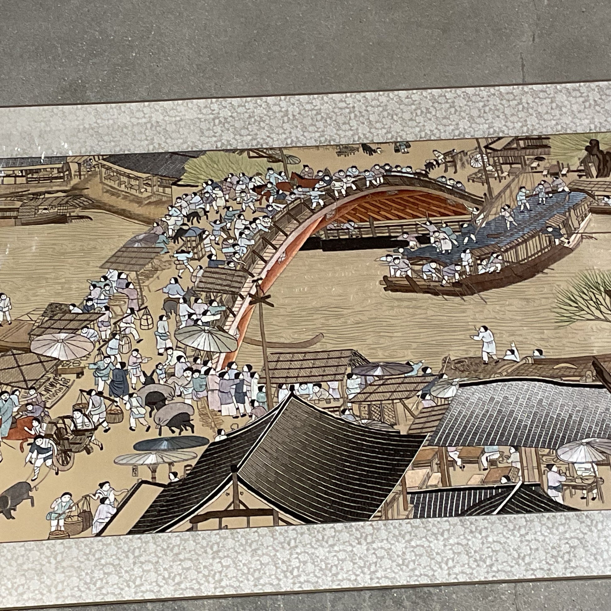 VTG. Asian Silk Embroidered Scroll with Wood Case and Dust Bag- 93" x 16.5"