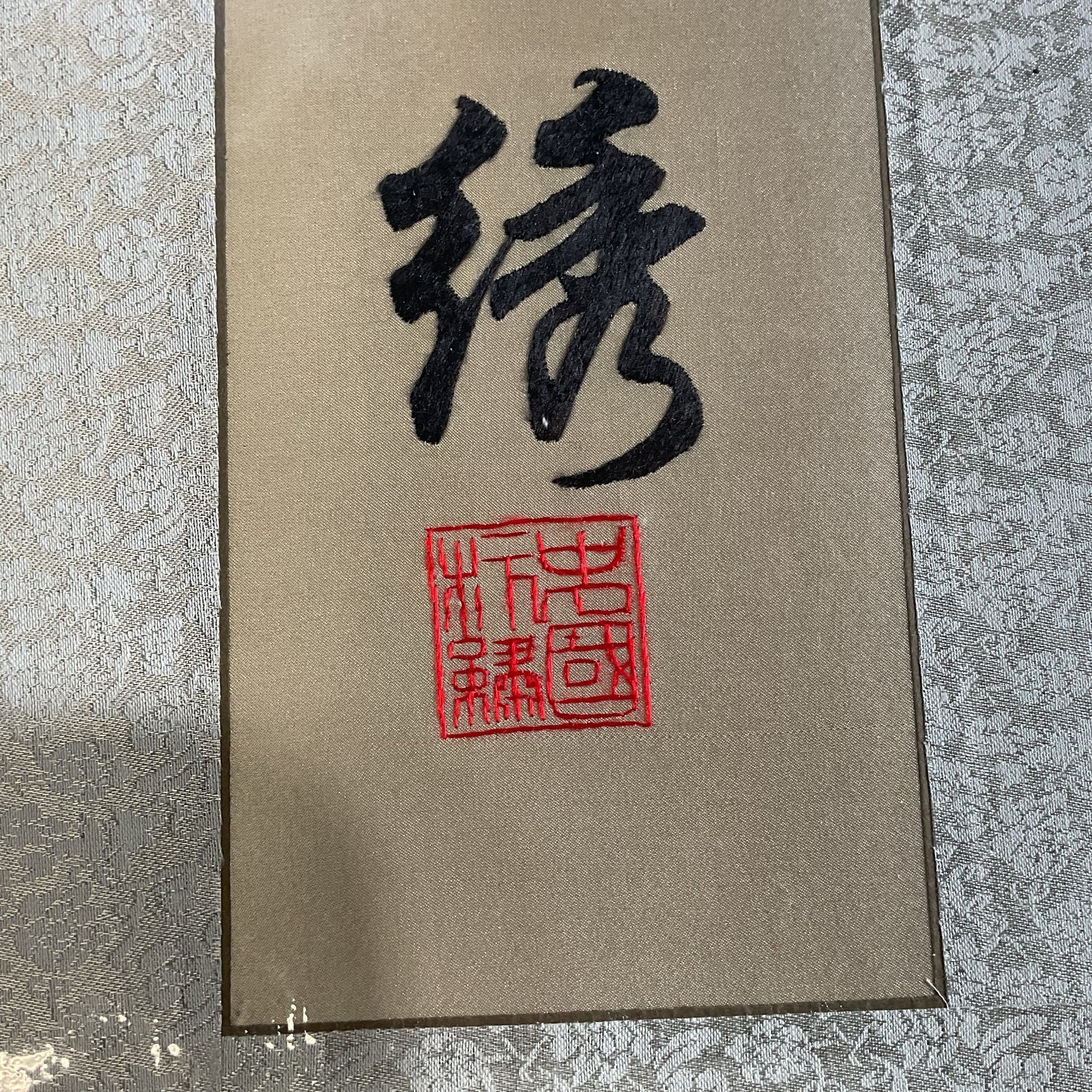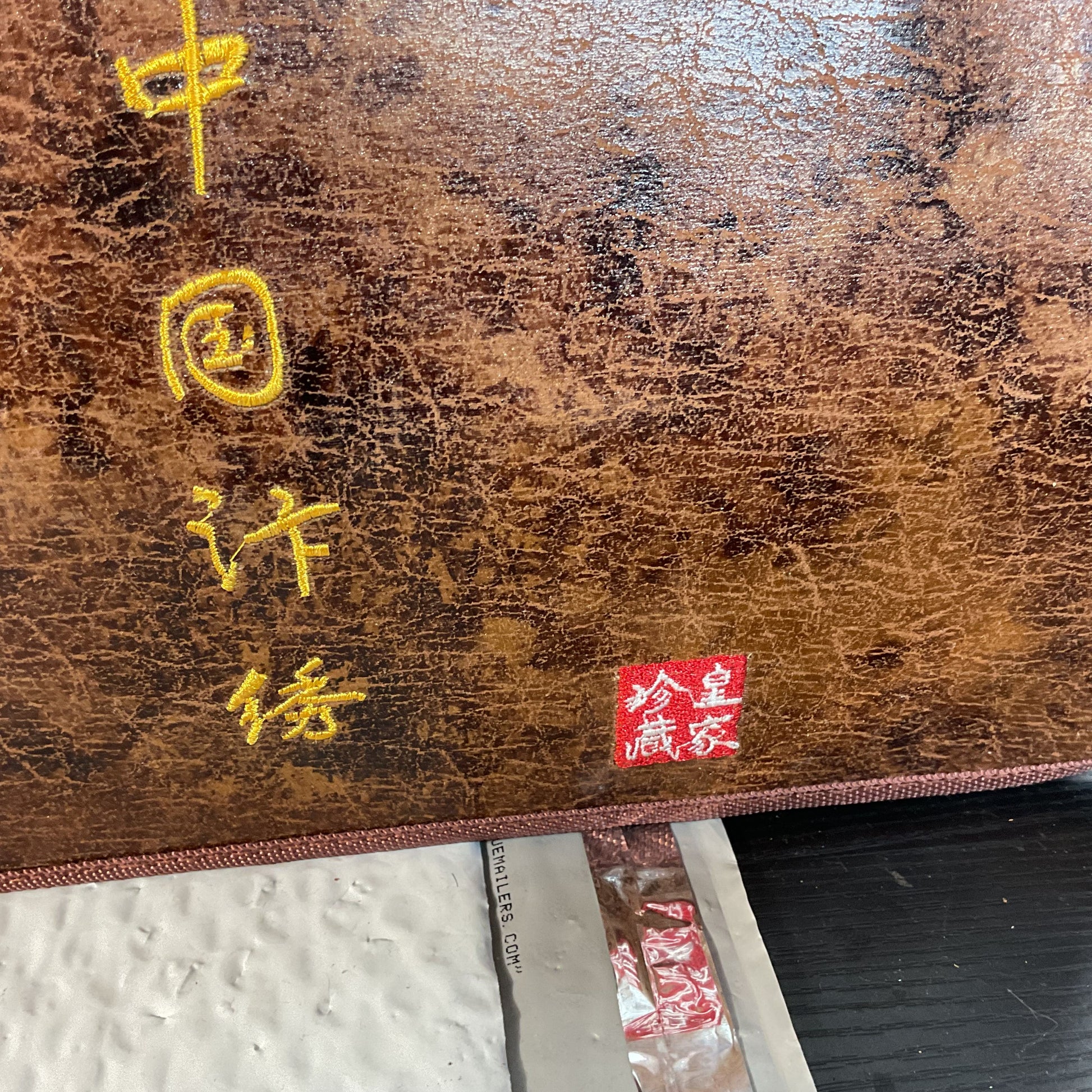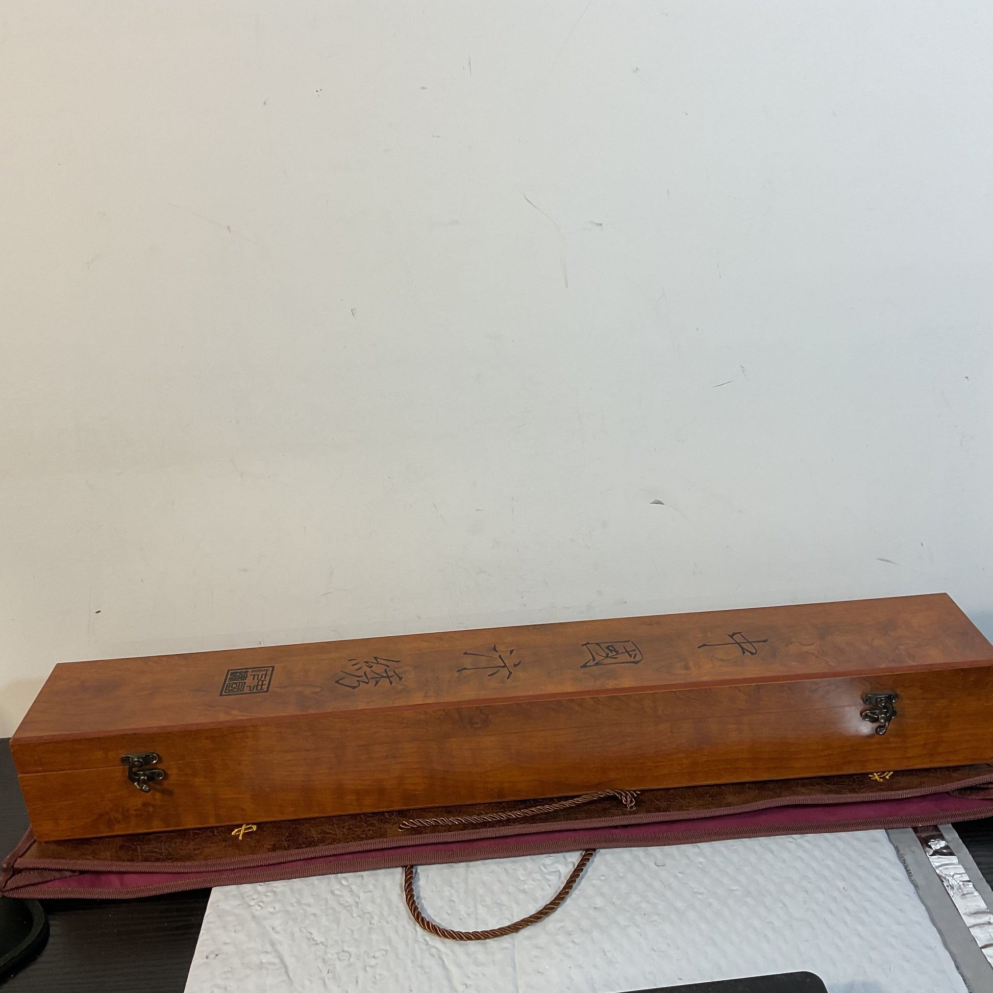 VTG. Asian Silk Embroidered Scroll with Wood Case and Dust Bag