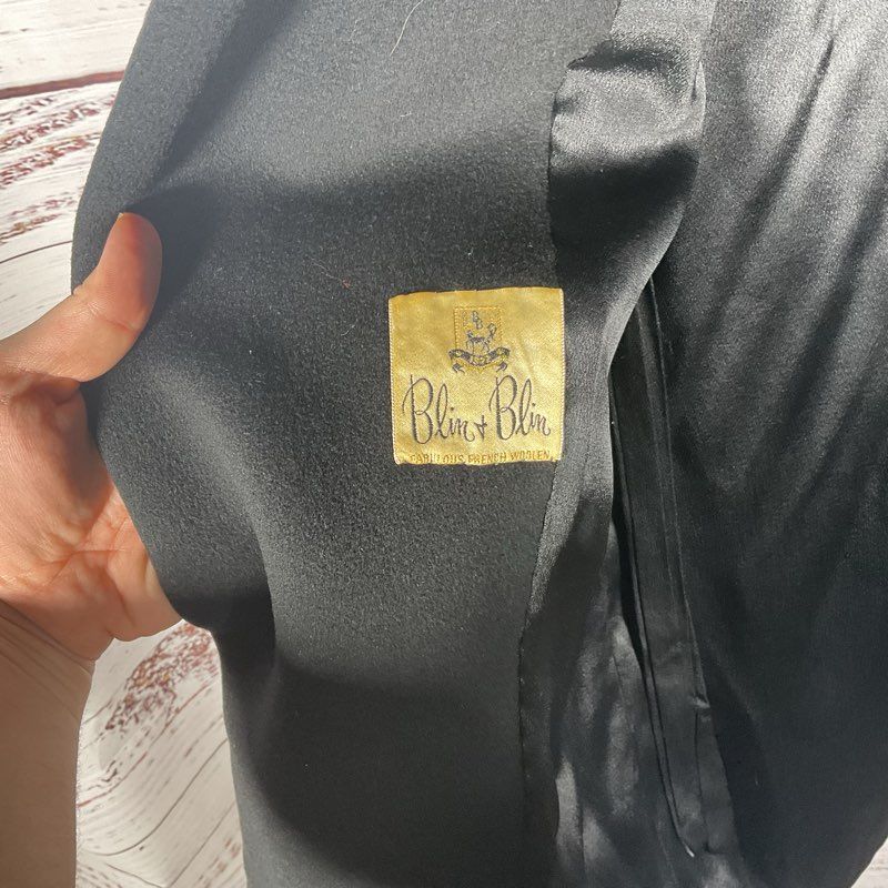 VTG. Blin+Blin Black Fur Cape Collar Wool Coat - Size in Description