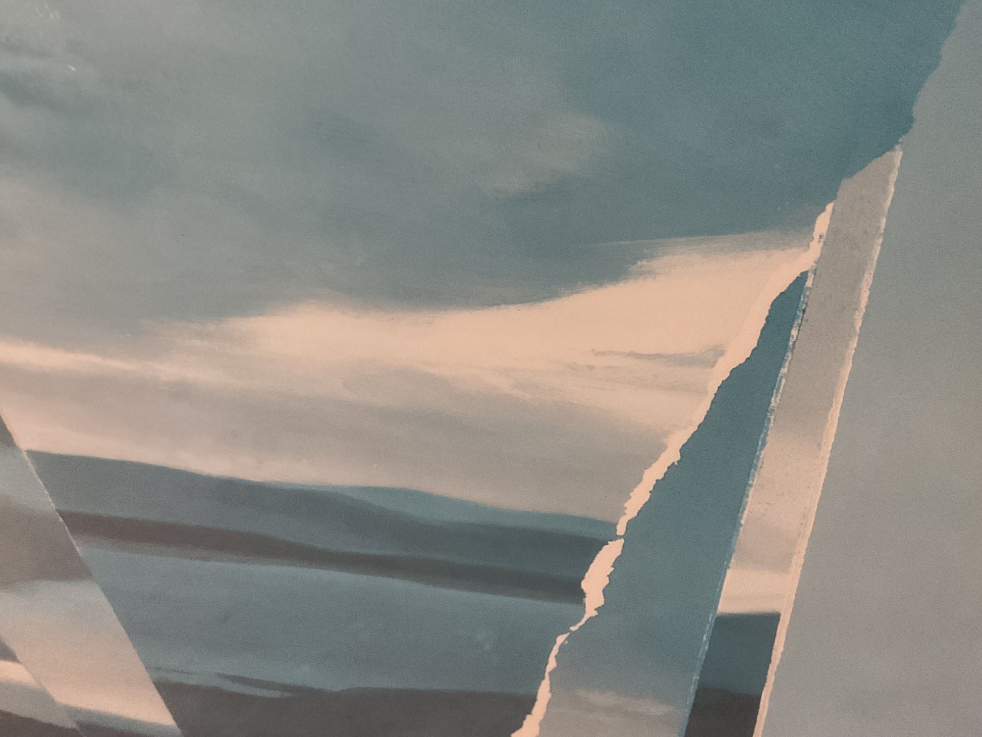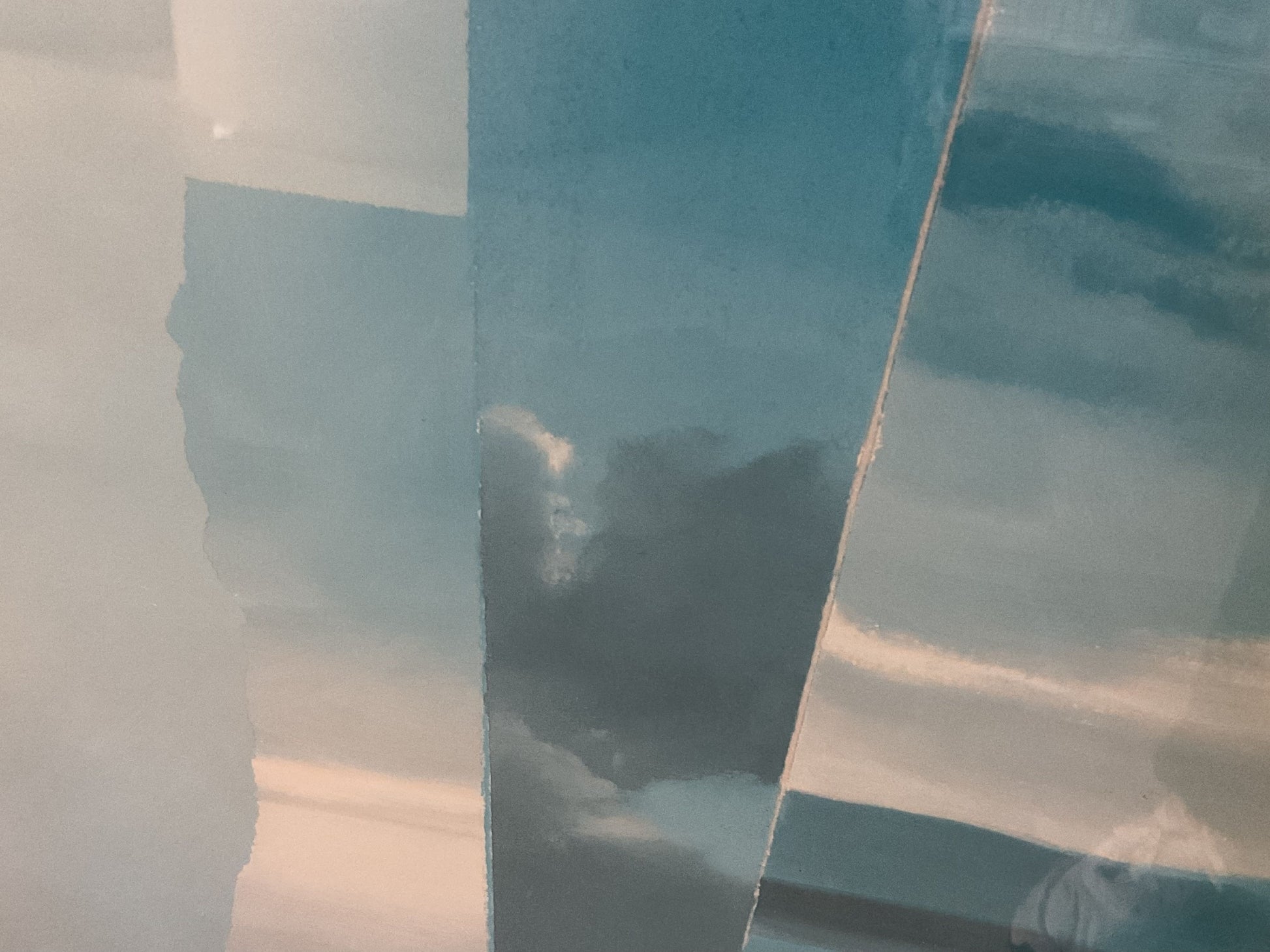 Description: VTG. Blue White Hues Abstract Lithograph- FRAMED 41" X 31.25" LITHOGRAPH Framed