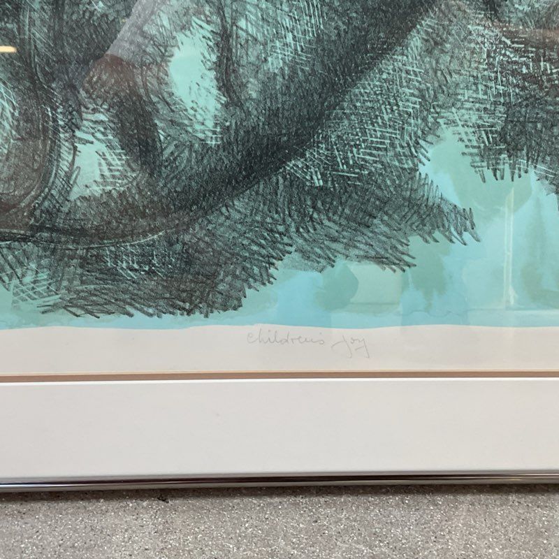 Description: Children's Joy Print by Chaim Gross Signed. Framed