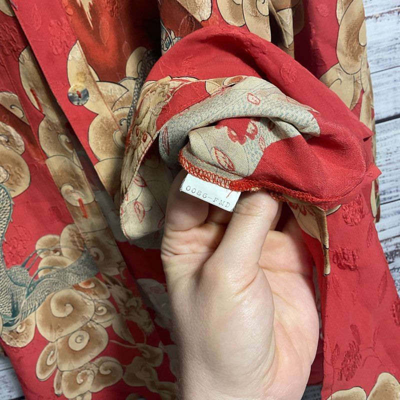 VTG. Citron Red Silk Dragon Pattern Mandarin Collar Button Up Tunic Blouse sz S