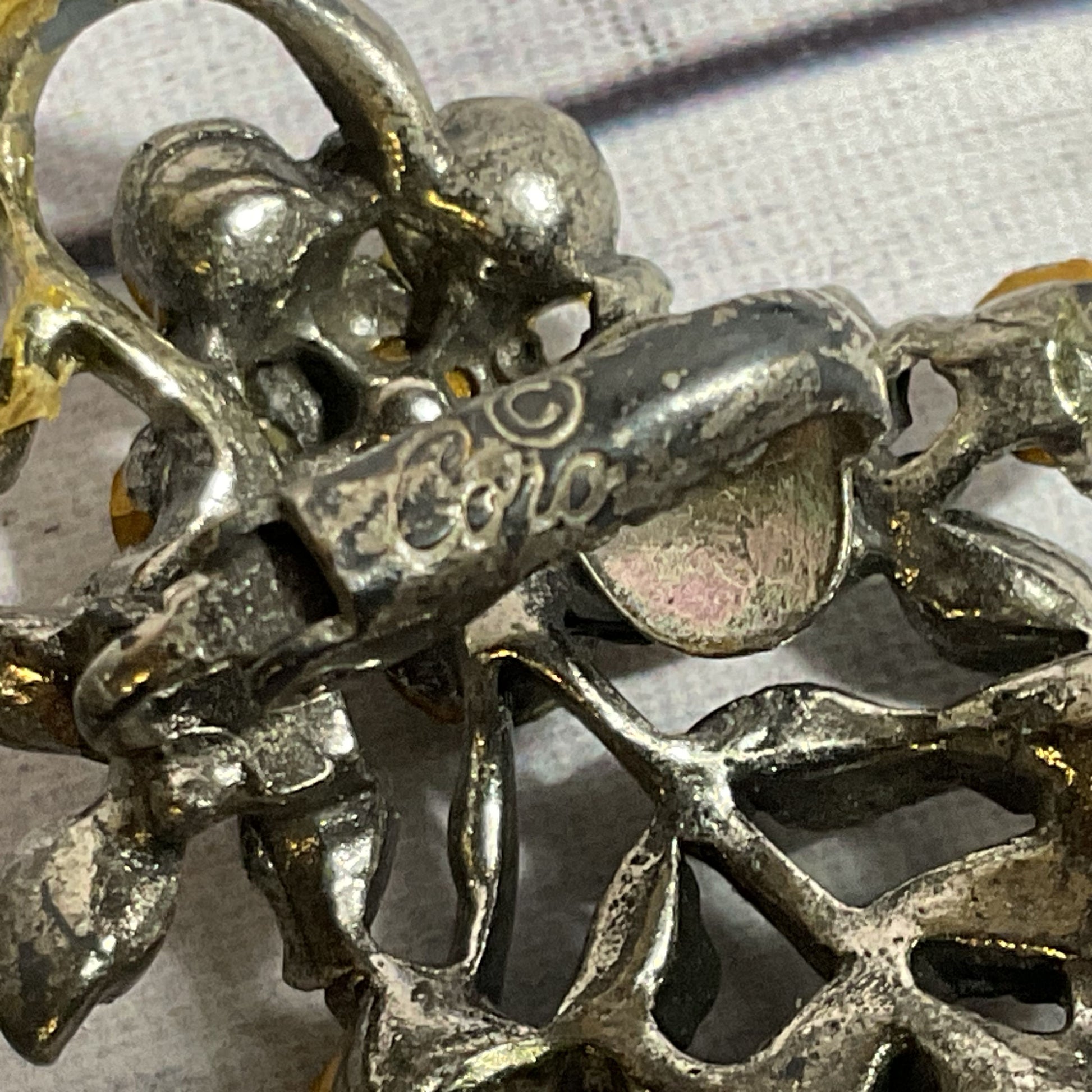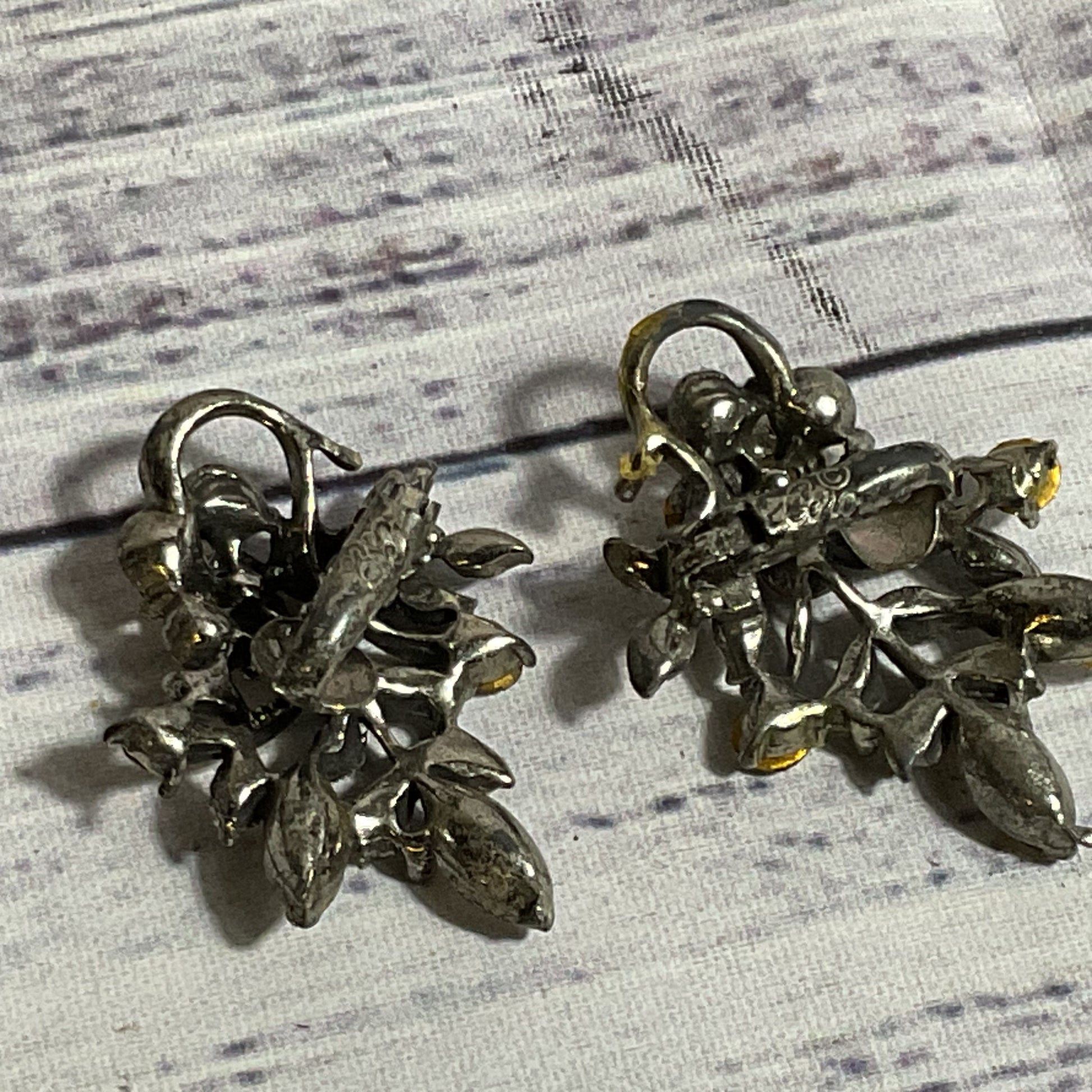 VTG. CORO Silver Tone Rhinestone Clip On Earrings- 1.5"