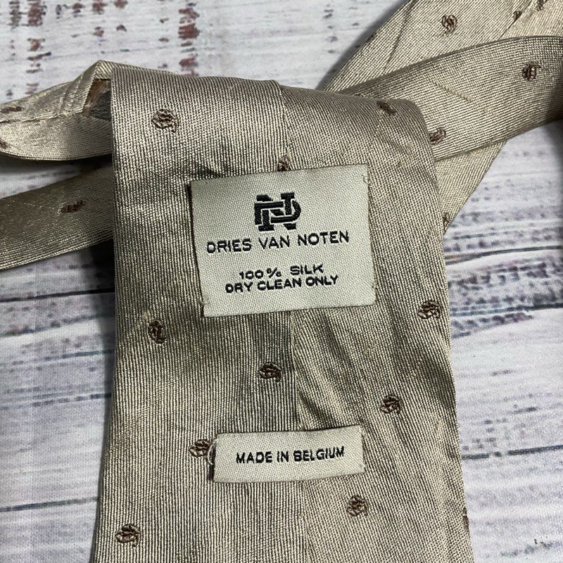 VTG. Dries Van Noten Silver Patterned Silk Tie - Size 55 in.