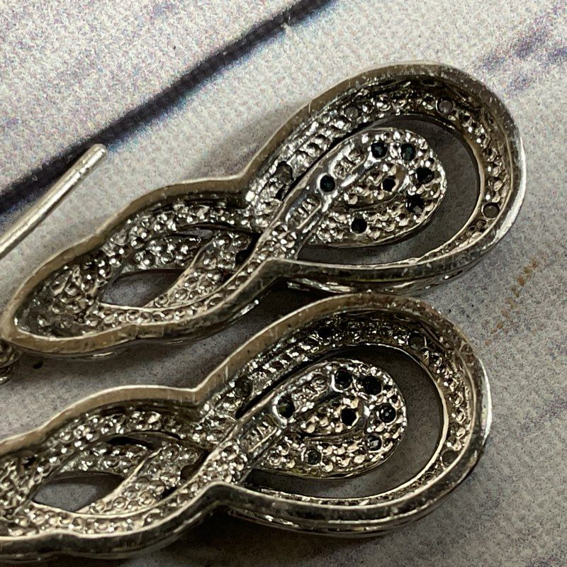 VTG. FAS Silver Time Diamond & Sapphire Accent Dangle Earrings- 1.25"