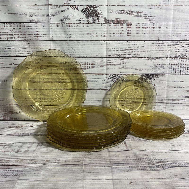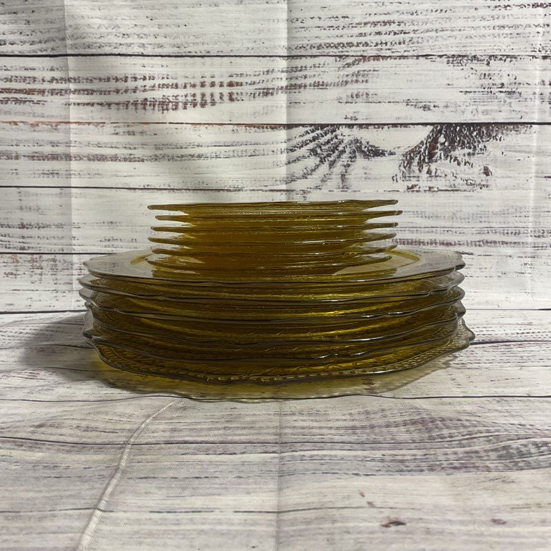 Vtg Federal Glass Patrician Amber 12 pc Depression Era Luncheon, Bread Plate Set