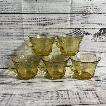 Type: Vtg. Federal Glass Patrician Amber 5 Pc. Depression Era Tea Cup Set