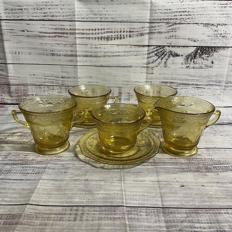 Type: Vtg. Federal Glass Patrician Amber 8 Pc. Depression Era Tea Set