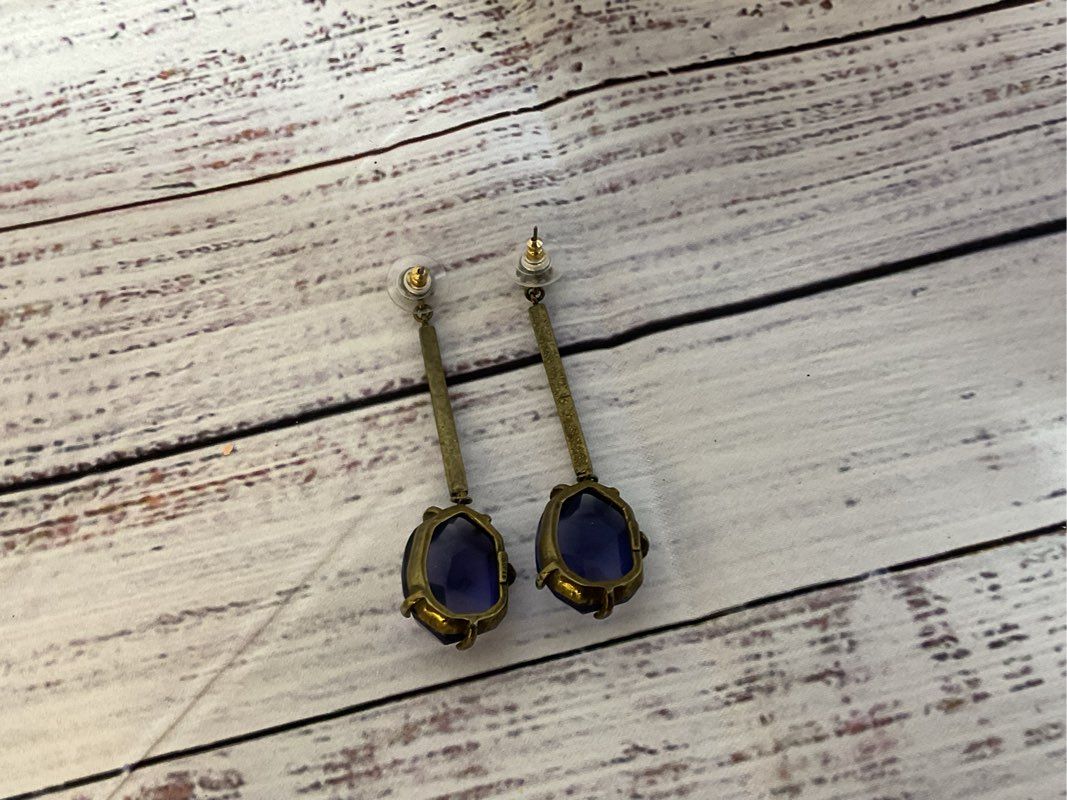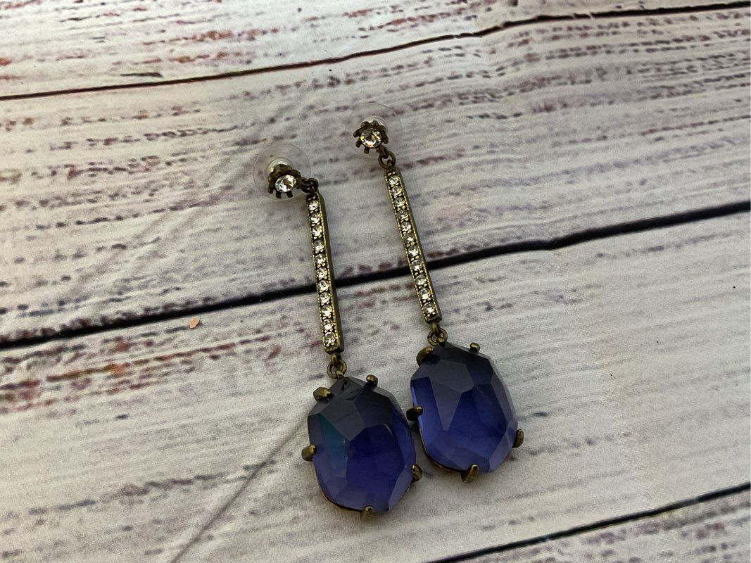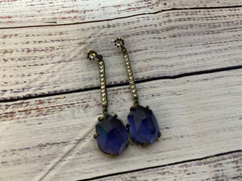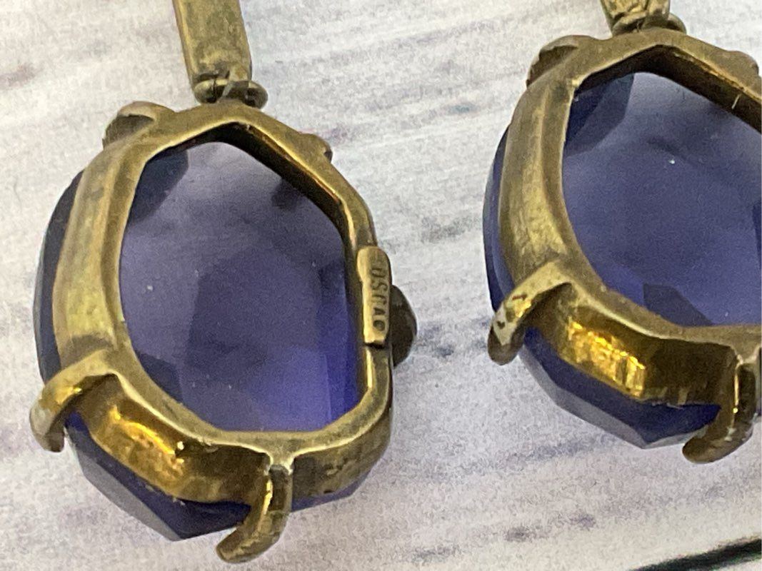 VTG. GERARD YOSCA Bronze? & Purple/Clear Rhinestones Dangle Earrings- 3"