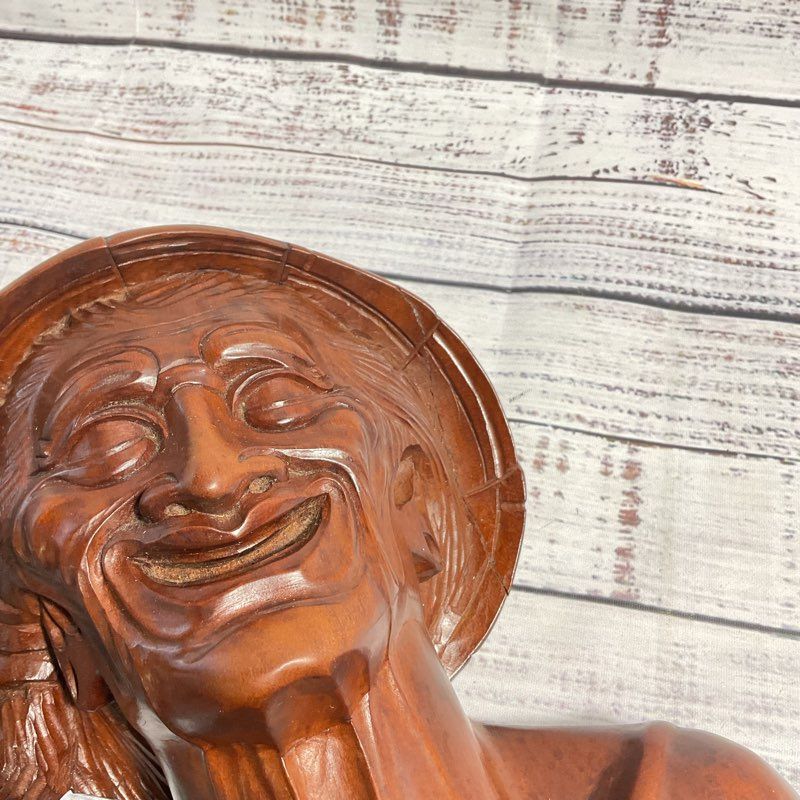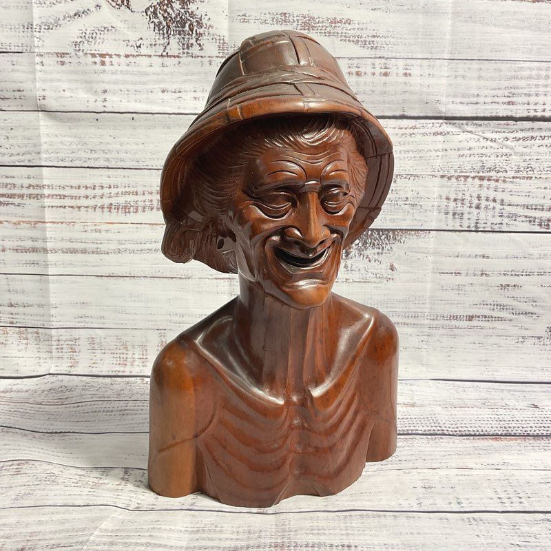 Description: Hand Carved Wooden Elder Man Sculpture